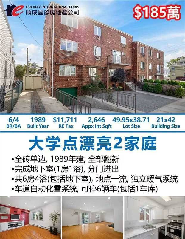 College Point大学点房子出售 College Point NY 新上市大学点房屋出售 🌟大学点漂亮2家庭