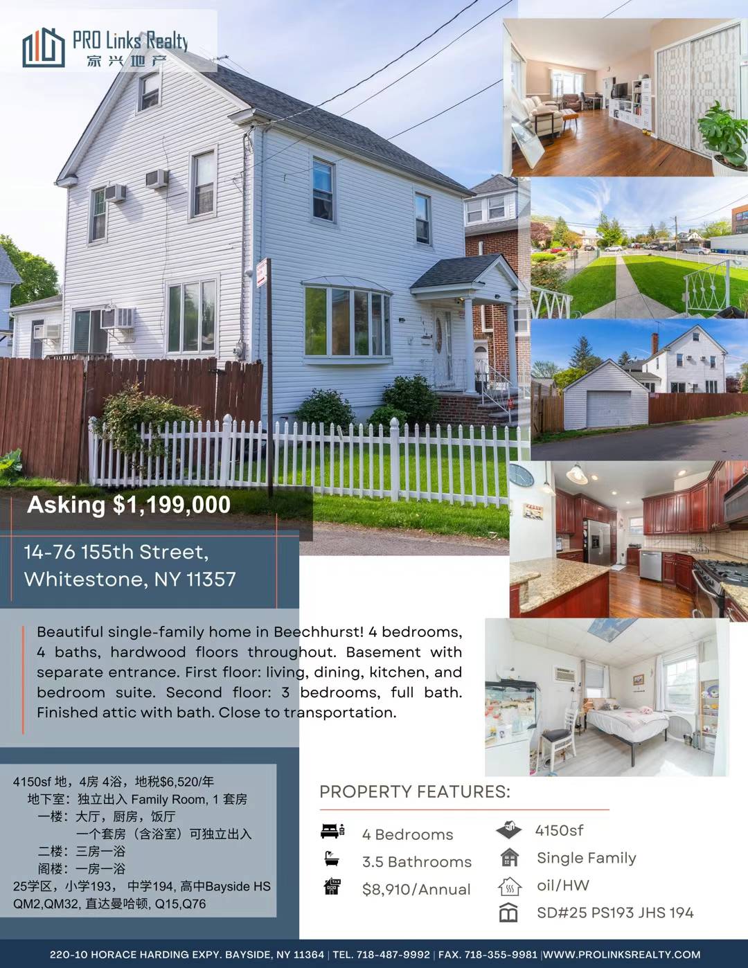 Whitestone白石镇房子出售Whitestone NY新上市白石镇房屋出售🔥新上市白石镇一家庭 🧧售119万