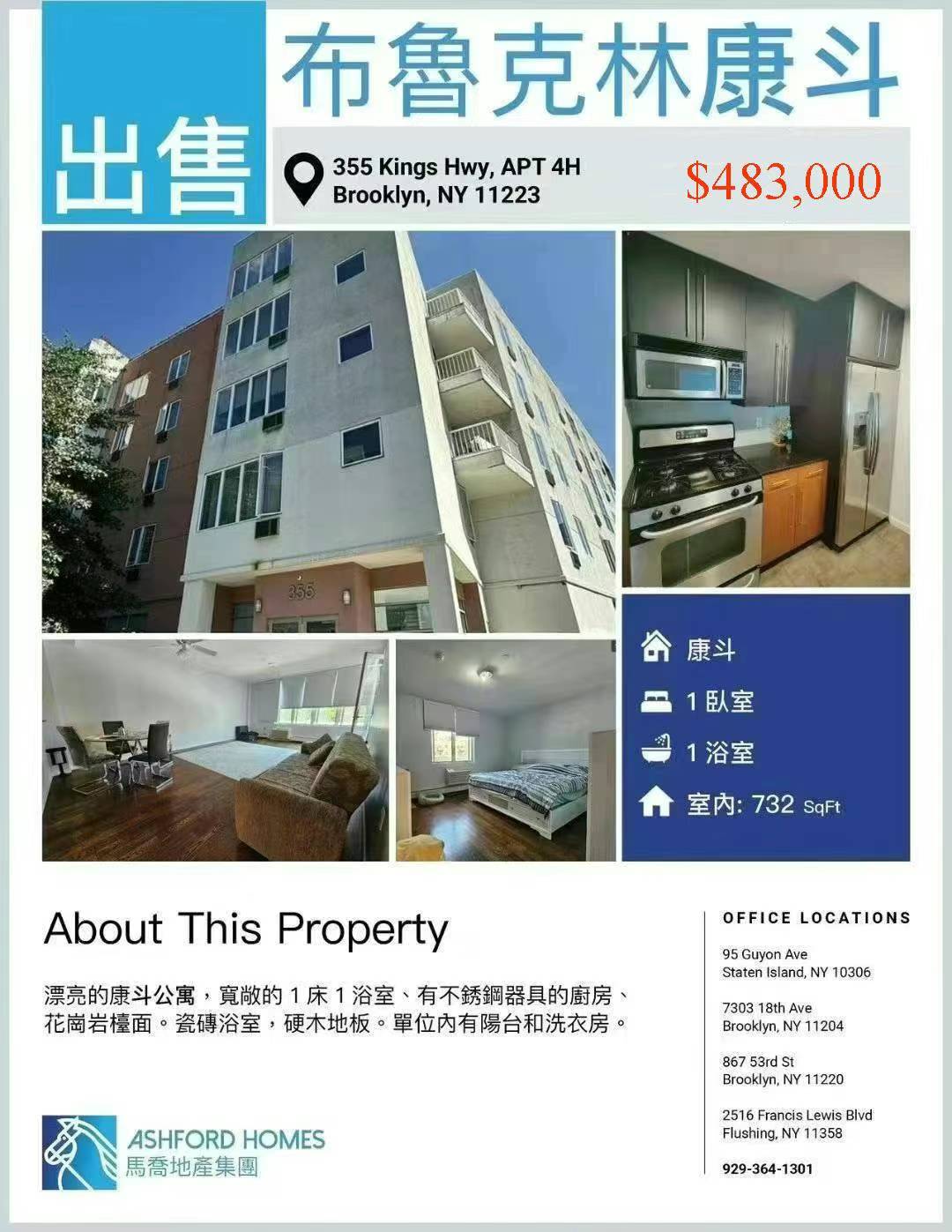 Brooklyn布鲁克林康斗出售 Brooklyn NY Condo for sale布碌仑新上市康斗出售降價, 降價現售$48萬3!