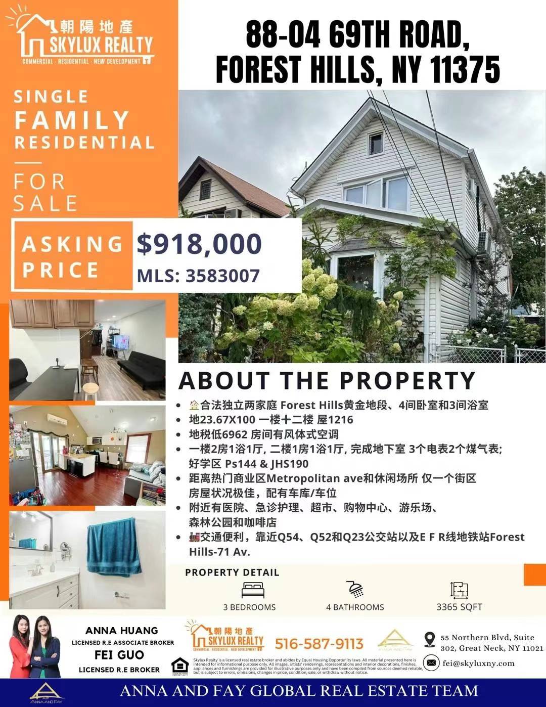 🆕🏡✨新上市✨🏡❤️🔥合法独立两家庭 Forest Hills黄金地段、4间卧室和3间浴室 91.8万