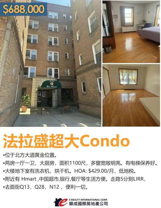 🔥法拉盛超大Condo 出售🔥Flushing法拉盛康斗出售Flushing NY Luxury Condo for sale新上市法拉盛康斗预售 位于北方大道黄金位置。价格$68万8。