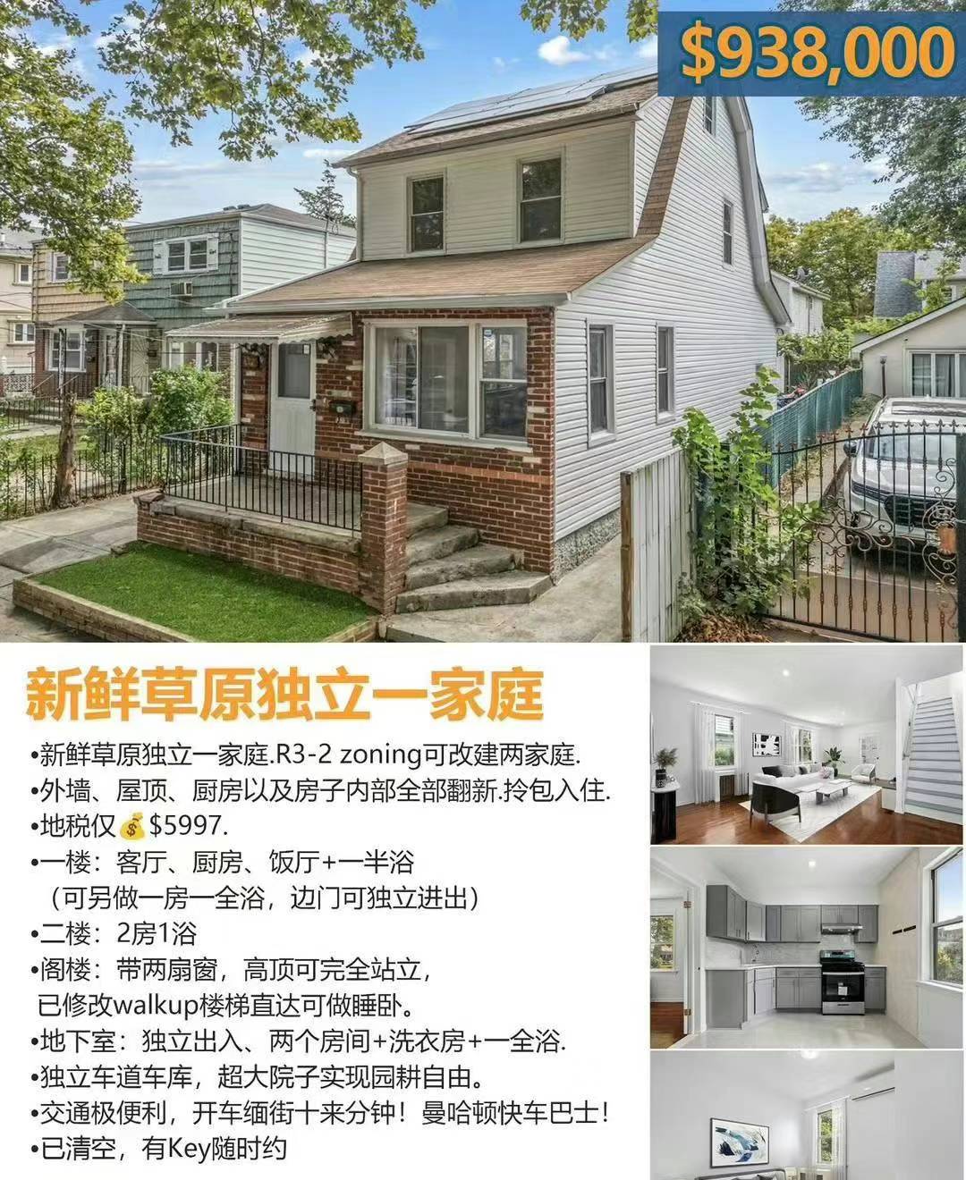 Fresh meadows新鲜草原房子出售 Fresh meadows NY 新上市新鲜草原房屋出售 新鲜草原独立一家庭.两家庭zoningR3-2
