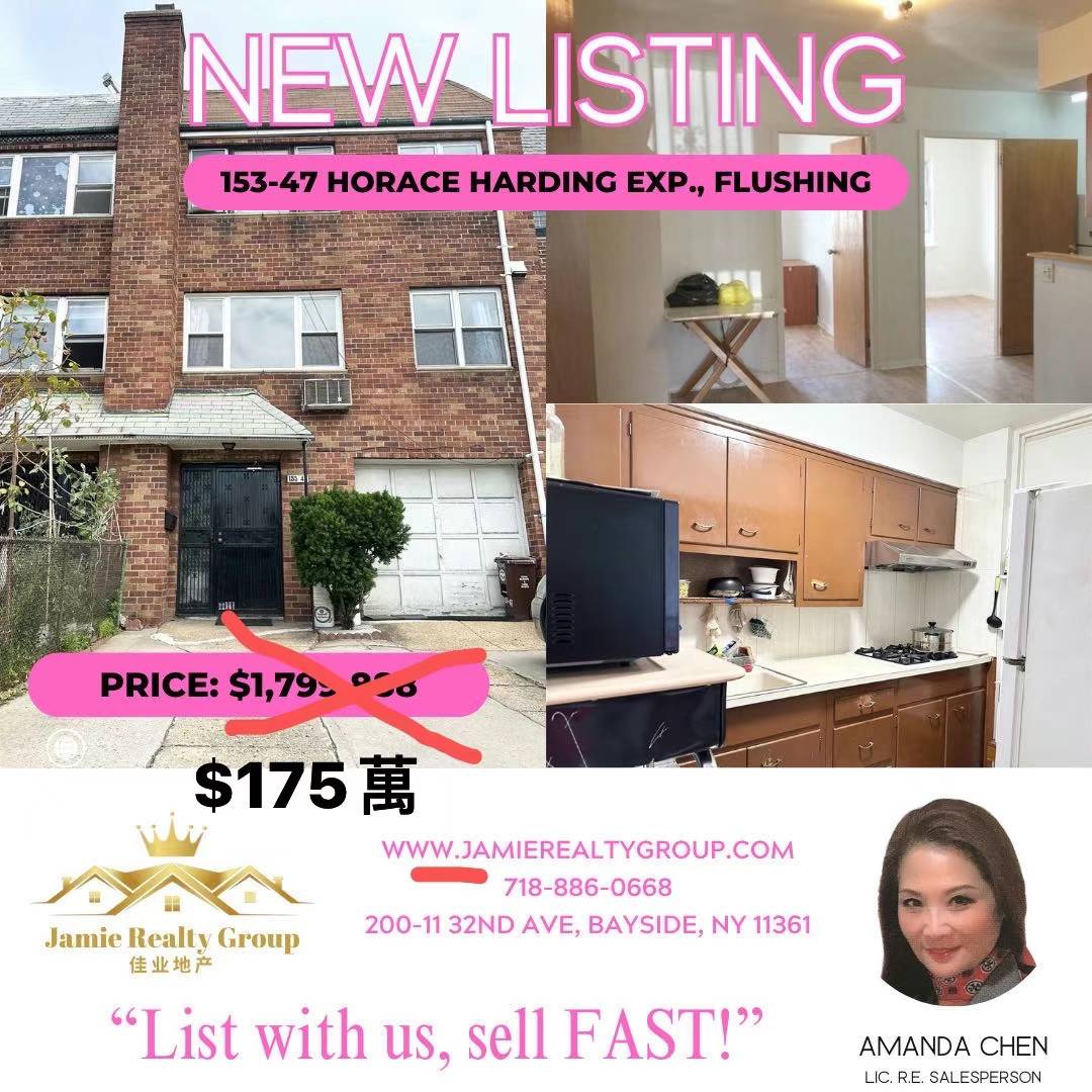 👏首次公展Sunday 12-2pm👉好消息價格調整只要$175萬🌹投資者看過來👉須預約👉🌹新上市🌹佳業地產獨家代理,153-47 Horace Harding. Expy 11367近新中美超市地面三層+地下室,少有的連棟磚房合法🌹三家庭🌹