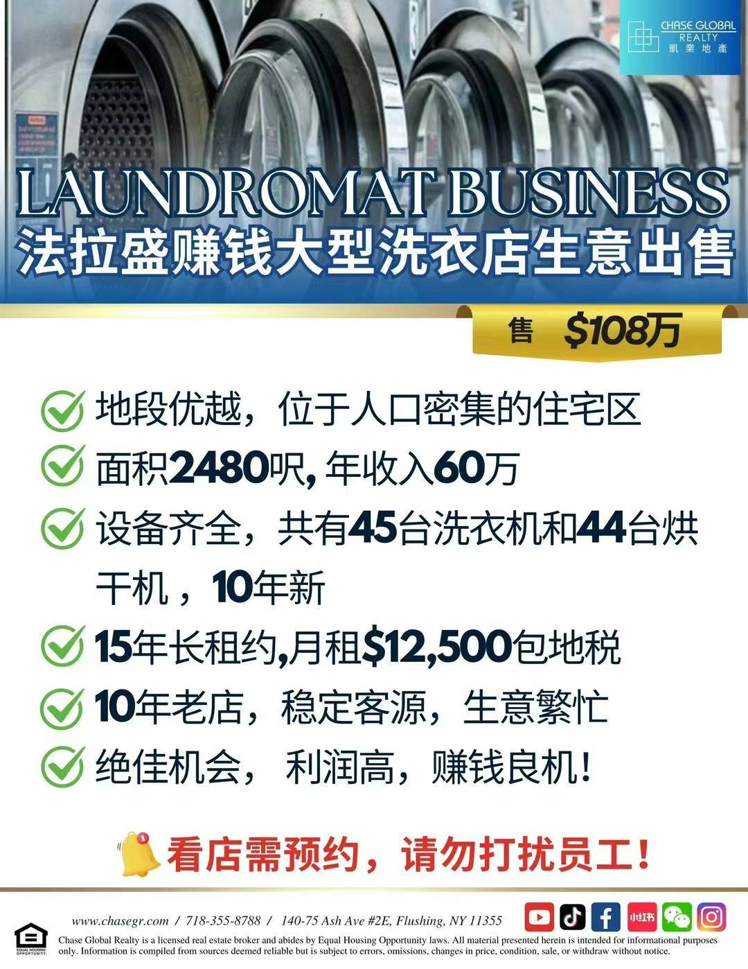 🔥法拉盛赚钱大型洗衣店生意出售🔥 #凯业地产全新房源