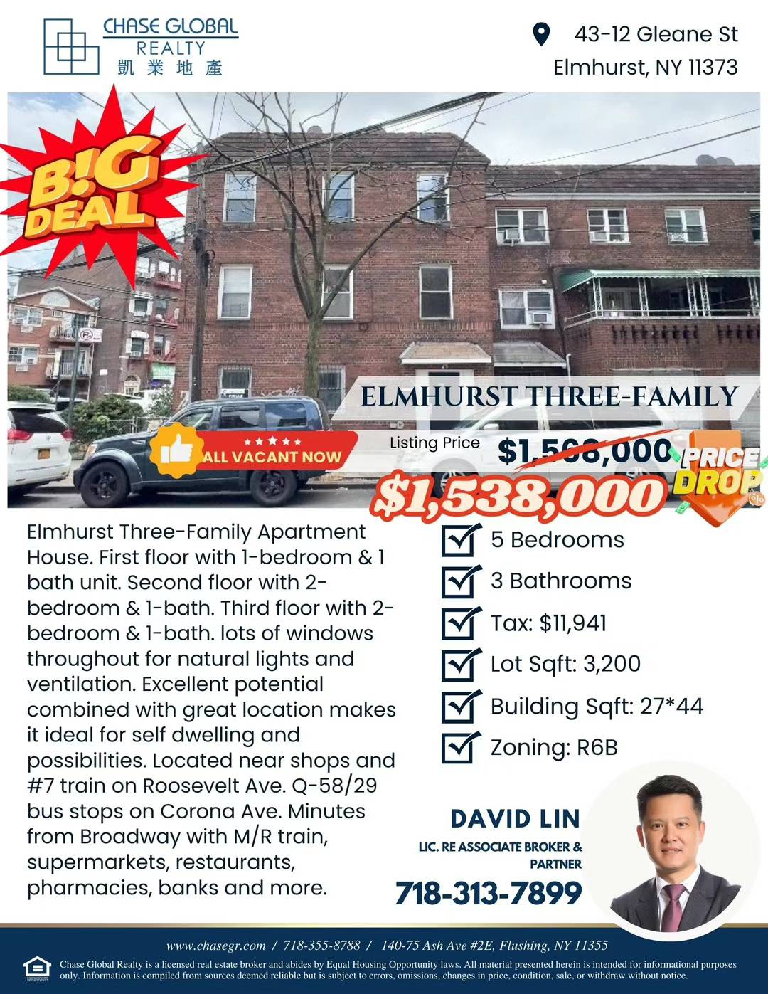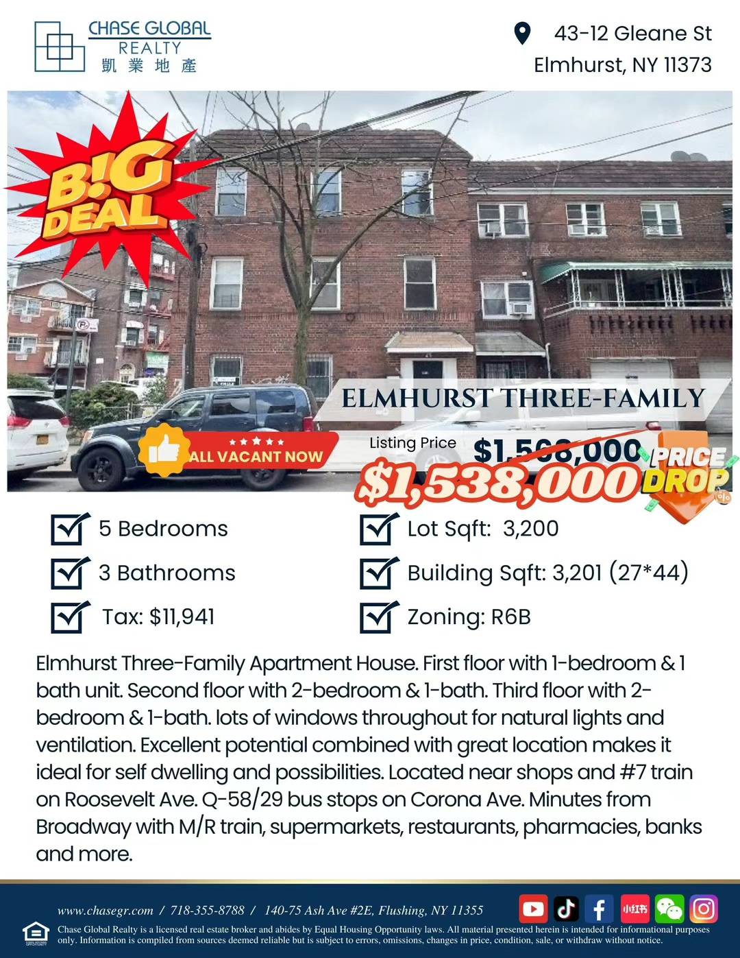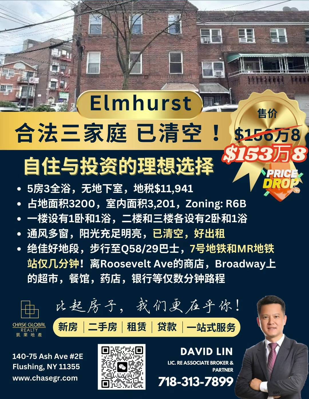 Elmhurst艾姆赫斯特房子出售Elmhurst NY新上市艾姆赫斯特房屋出售!大特价!🚇地铁旁Elmhurst绝佳好地段 三家庭出售🔥 #凯业地产全新房源 #高回报率投资房
