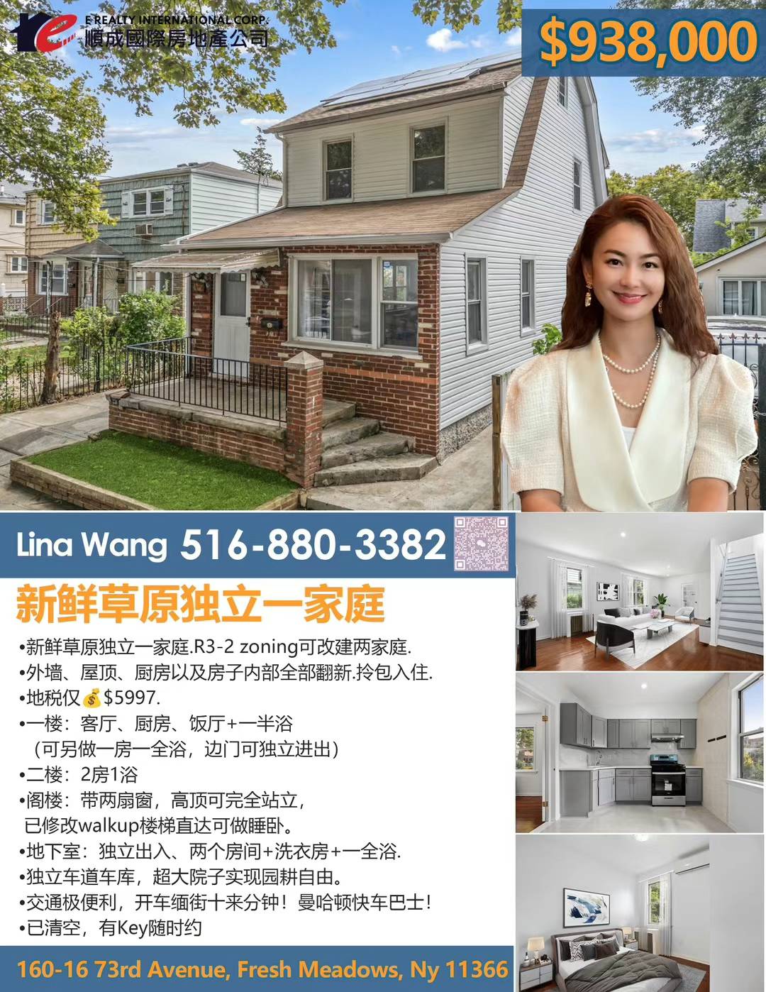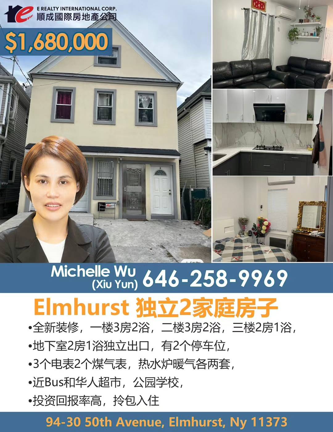 法拉盛华人房地产公司 纽约房地产经纪人Flushing纽约法拉盛房子房屋出售买卖 Flushing NY House for sale新上市法拉盛房屋房子出售买卖 E Realty Int’l Corp. 顺成国际房地产新房源上市了!欢迎大家联系L/A 约看新房源!也欢迎各位客户来委托 Welcome to contact our L/A! Fulfill every client’s request is E Realty RE elite’s responsibility