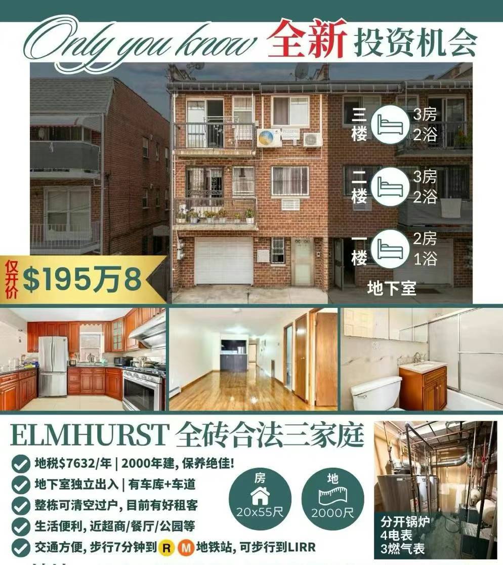 🎈Elmhurst艾姆赫斯特房子出售Elmhurst NY新上市艾姆赫斯特房屋出售💕Elmhurst单边全砖合法3家庭