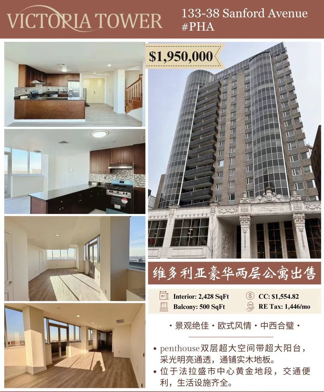 Flushing纽约法拉盛豪华康斗出售Flushing NY Luxury Condo for sale新上市法拉盛华丽康斗预售【法拉盛维多利亚豪华越层式(两层)加阳台出售💐】