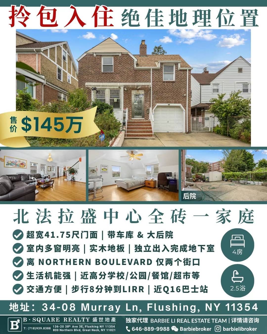 Flushing纽约法拉盛房子房屋出售买卖 Flushing NY House for sale新上市法拉盛房屋房子出售买卖 🏡北法拉盛中心全砖一家庭