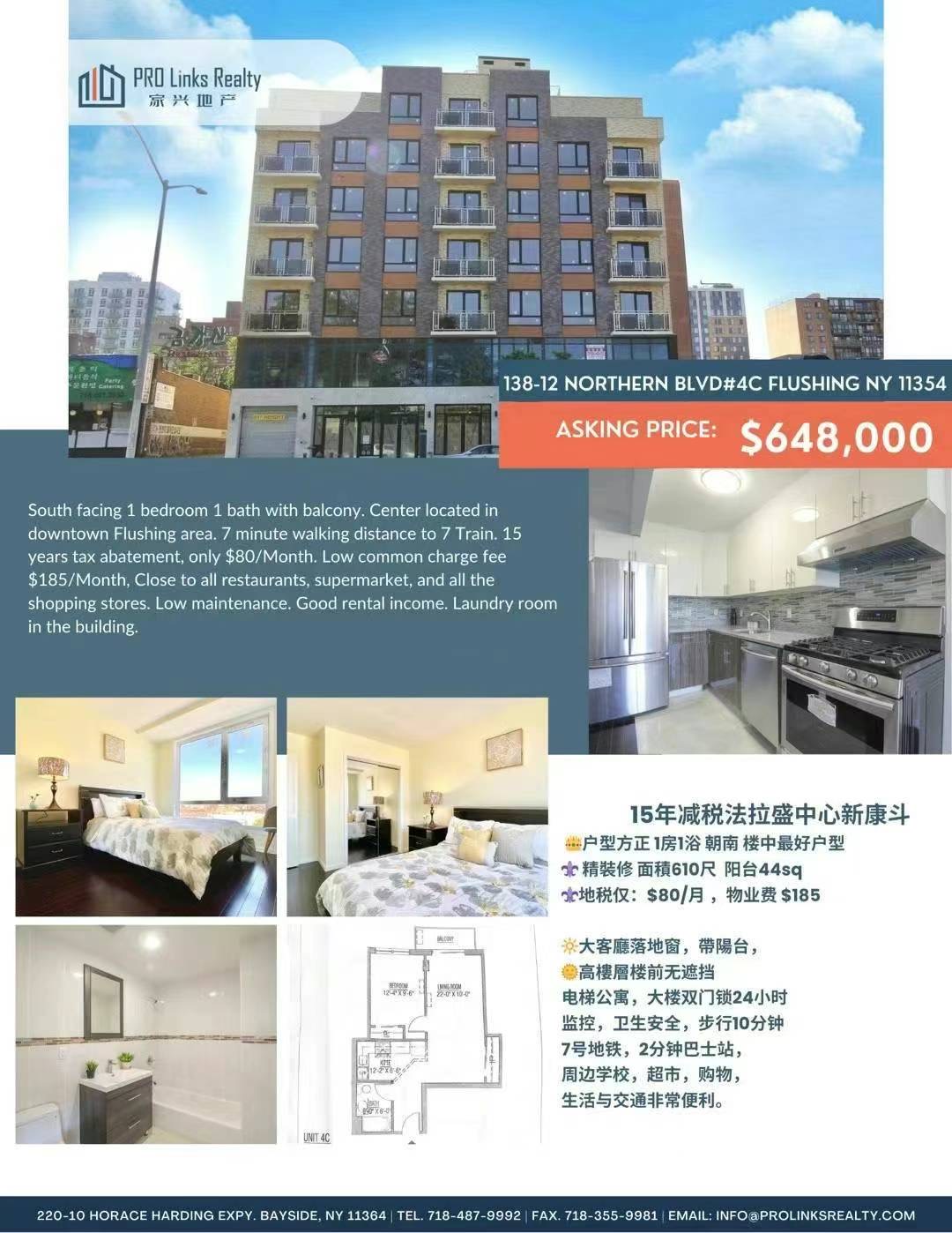 法拉盛 新楼聚集地 北方大道!asking price $648,000