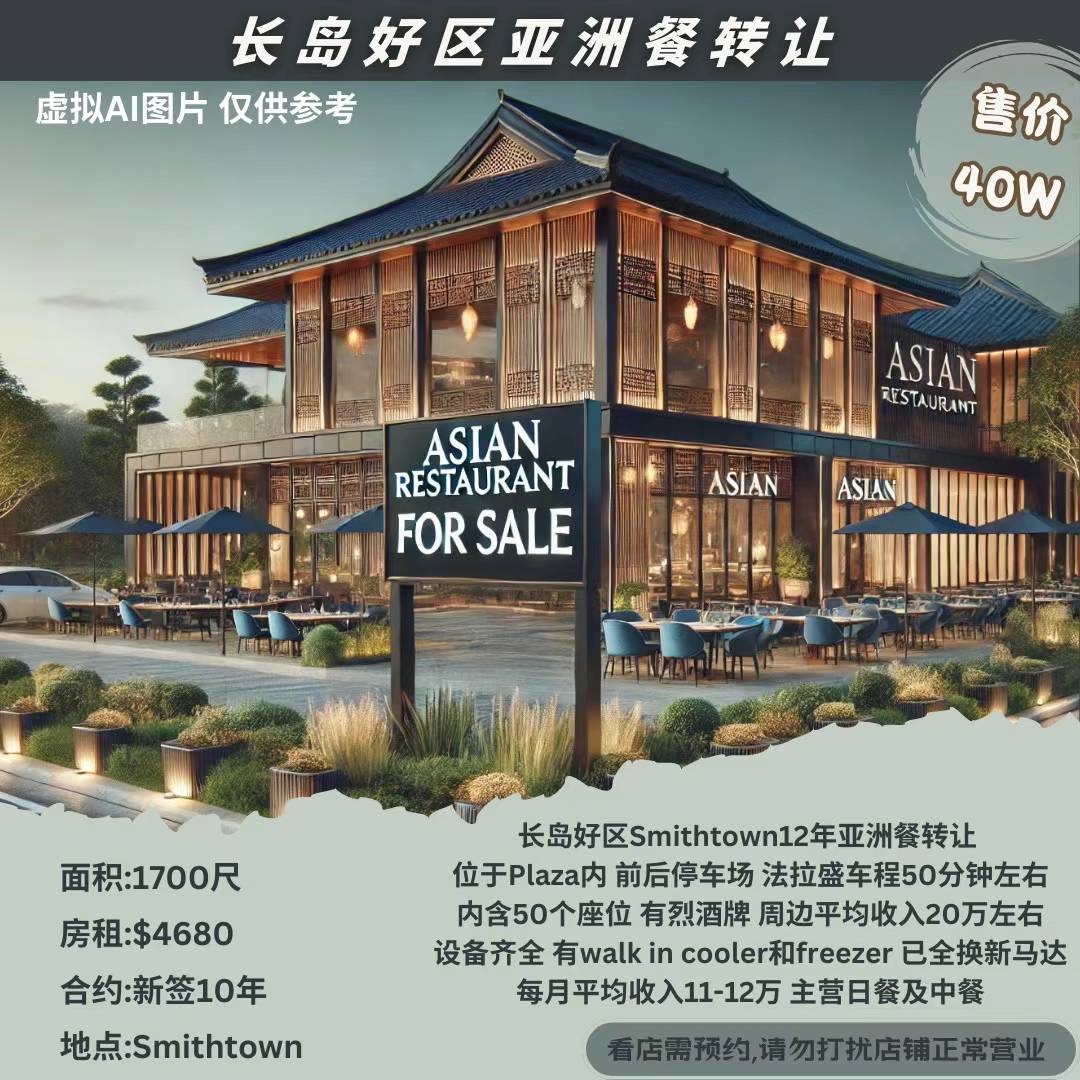 纽约餐馆转让新上市长岛好区Smithtown 12年亚洲餐转让