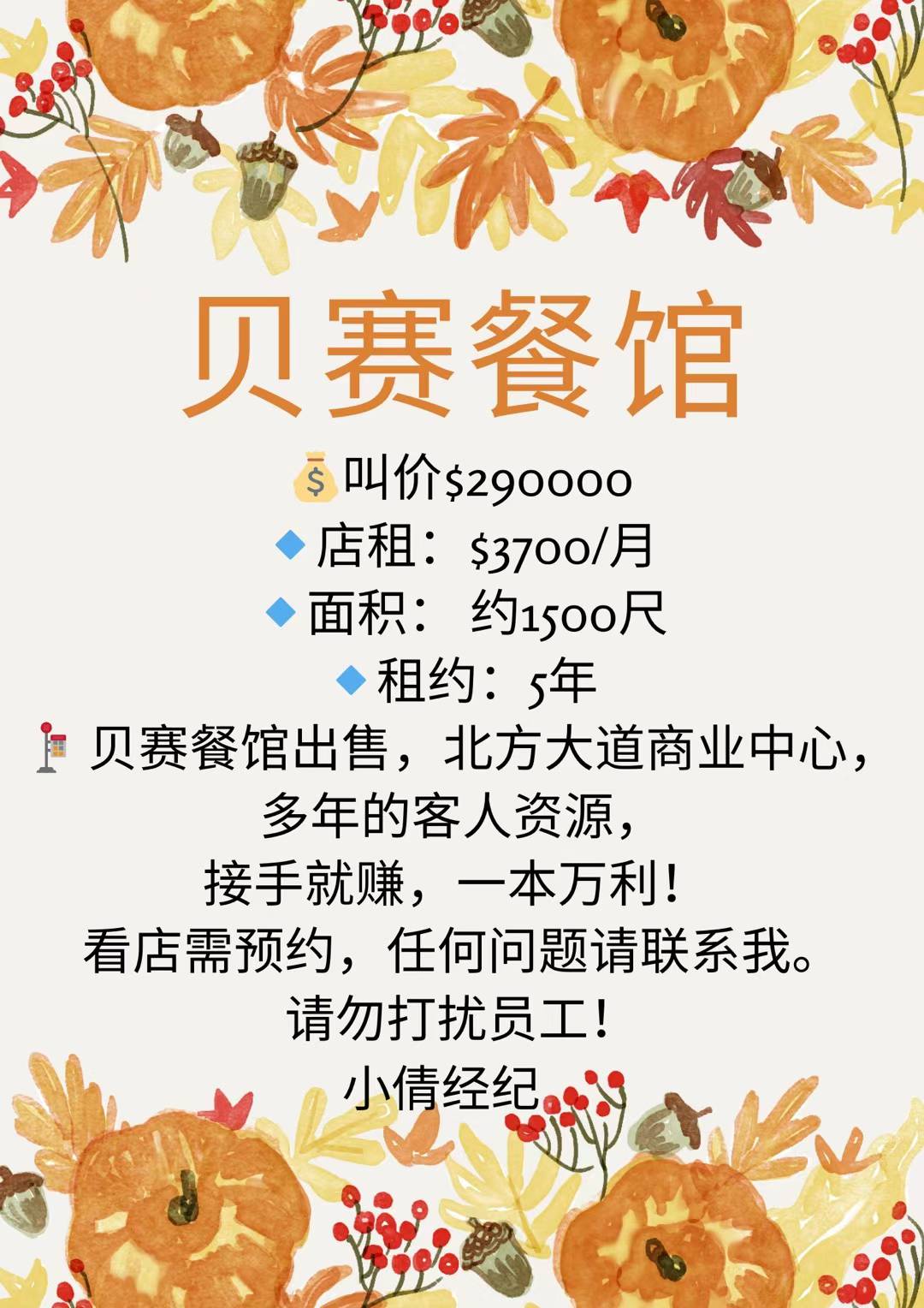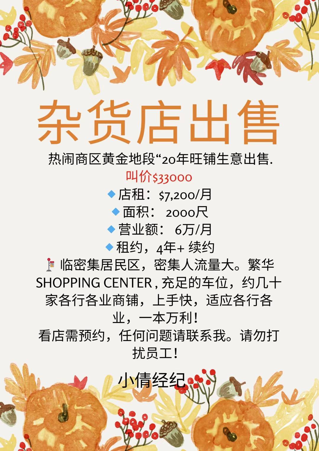 小倩经纪看店联系Cynthia646-267-0163