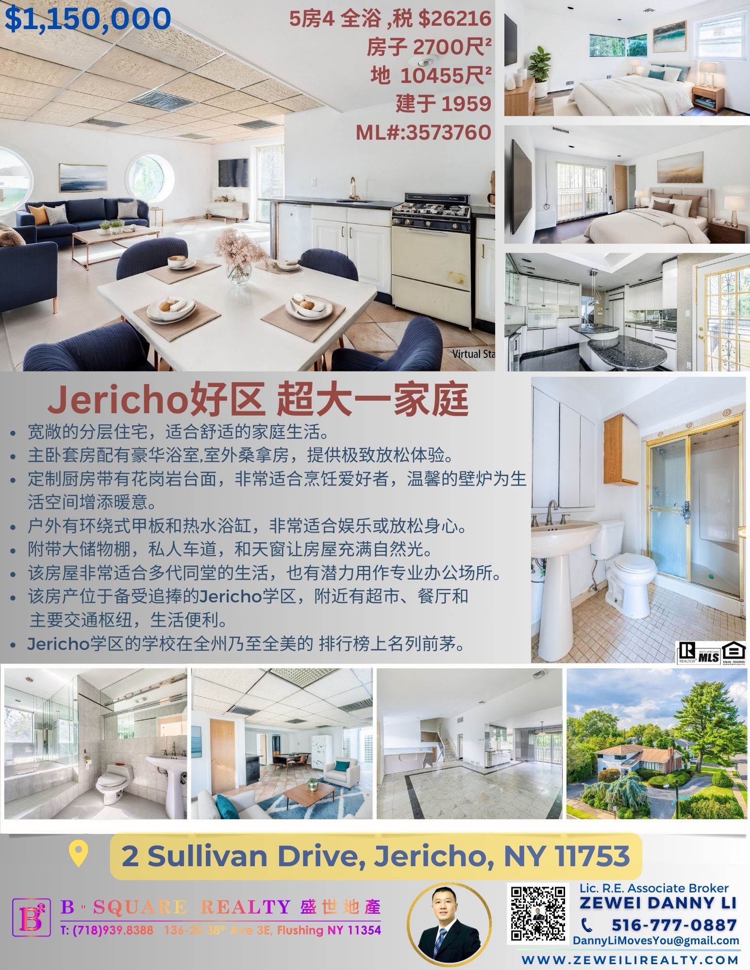 🏫 该房产位于备受追捧的Jericho学区,附近有超市、餐厅和主要交通枢纽,生活便利。