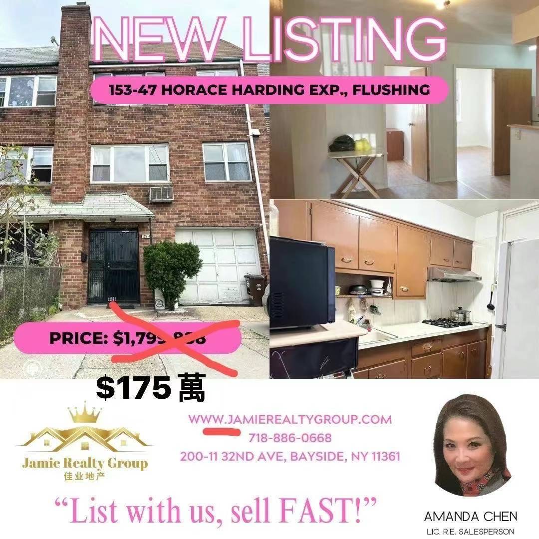 Flushing纽约法拉盛房子出售经纪代理 Flushing NY House for sale新上市法拉盛房屋出售买卖 👉好消息價格調整只要$175萬🌹投資者看過來👉須預約👉🌹新上市🌹佳業地產獨家代理,153-47 Horace Harding. Expy 11367近新中美超市地面三層+地下室,少有的連棟磚房合法🌹三家庭🌹
