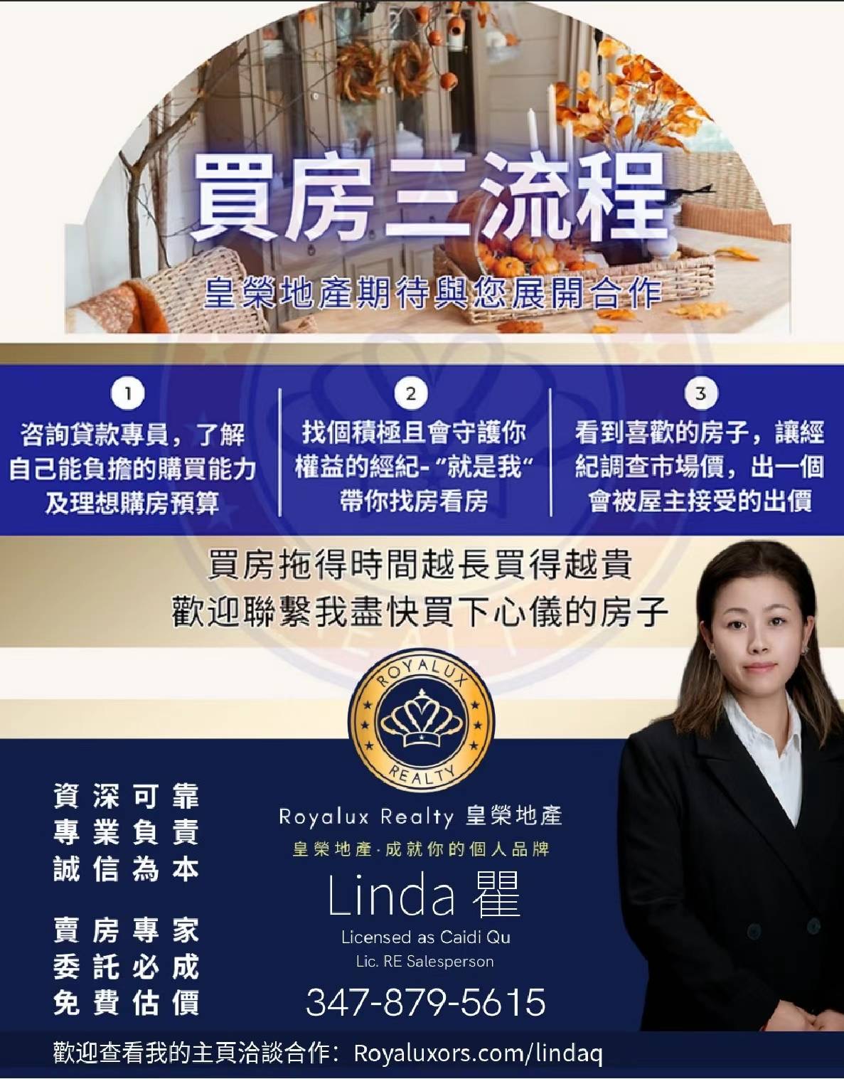 纽约资深千万房地产经纪 您是否正准备买房呢?找个专业的经纪“就是我”帮助您除了可以增快您买房速度以外,还能帮您以好价格买下,欢迎联系我开始看房吧~