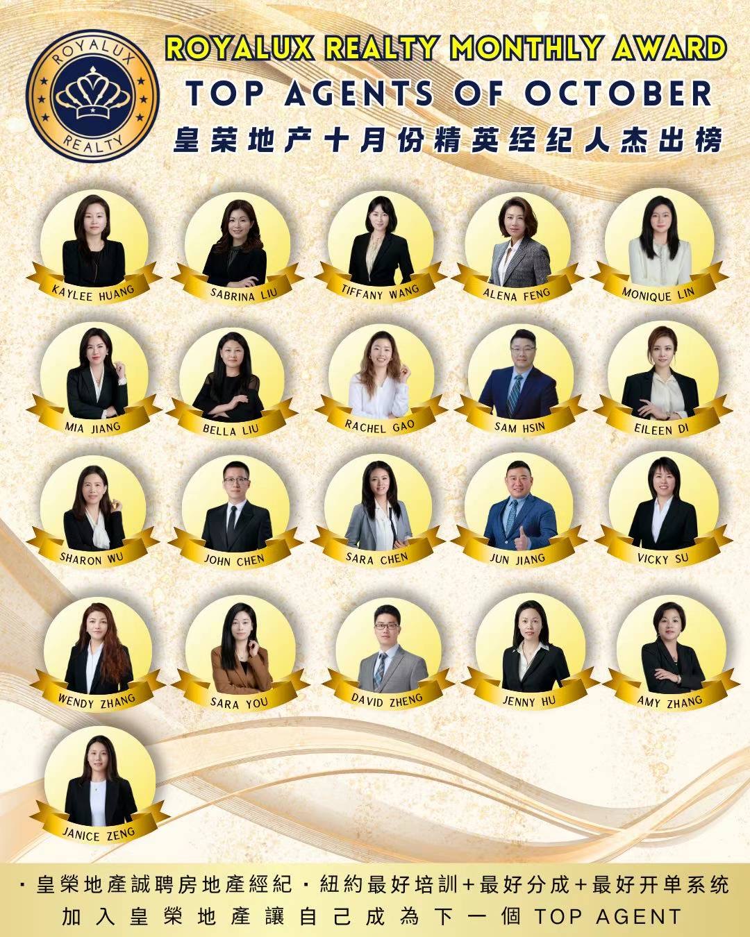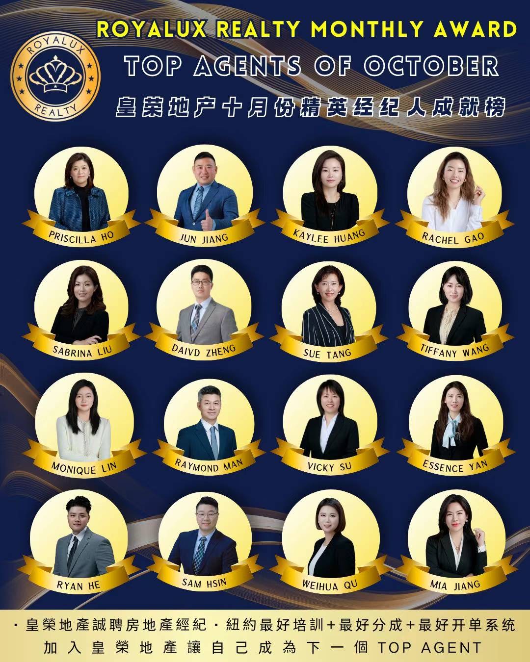 法拉盛华人房地产公司 纽约高端经验房地产经纪 🎊很高兴荣获10月份【皇荣地产销售精英成就榜】非常荣幸我在10月份上榜,衷心感谢每位客户的信任与支持。作为皇荣地产的优秀经纪人,我致力于为您提供一流的房地产服务。