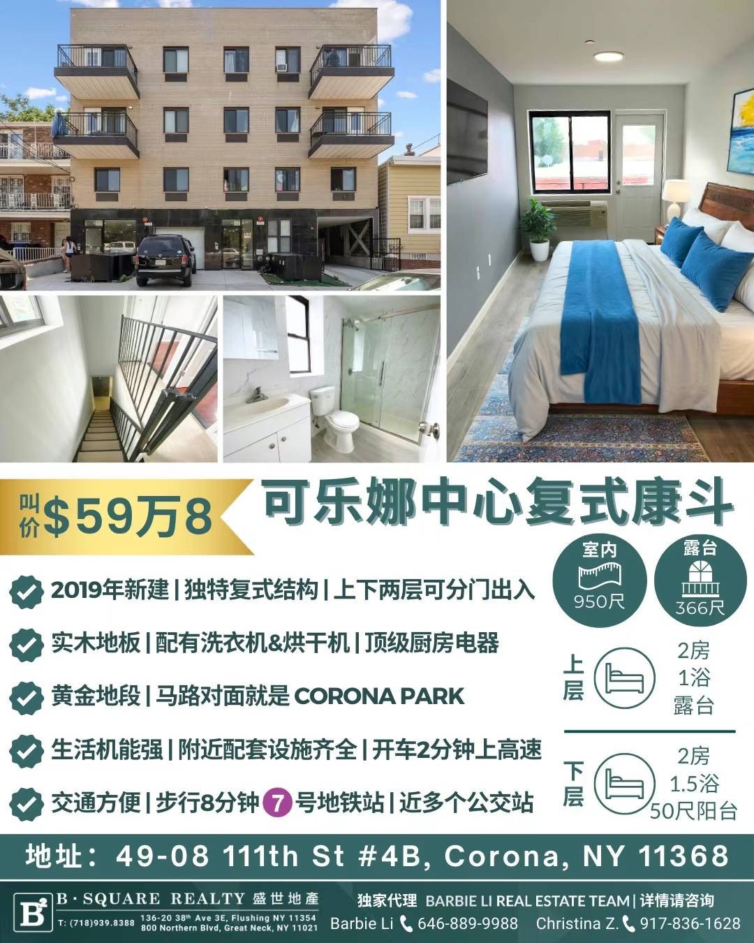 🚨Corona可乐娜房子出售Corona NY新上市可乐娜房屋出售🚨可乐娜中心独特复式康斗出售🚨🚨
