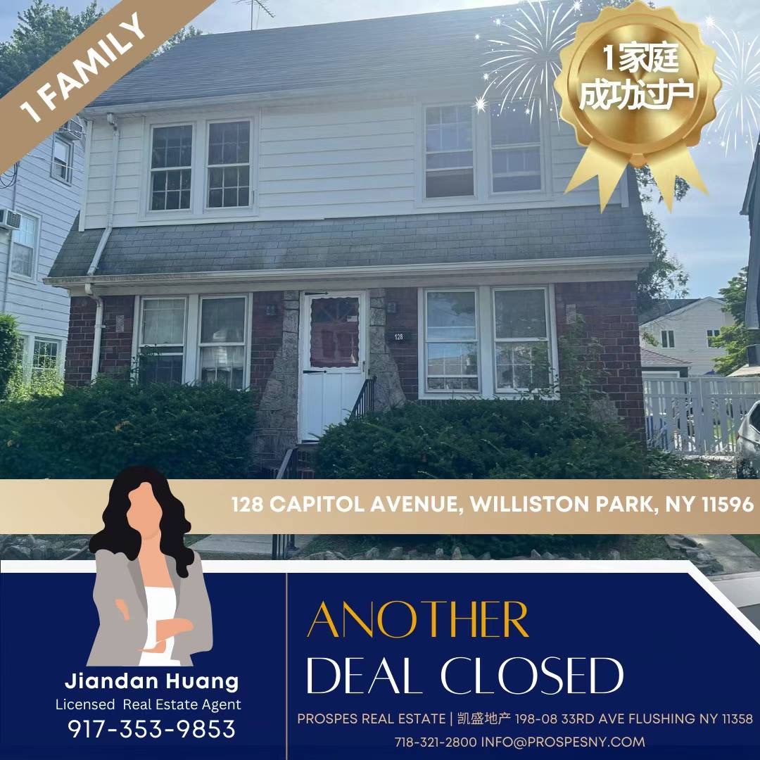 凯盛地产经纪Jiandan Huang成功过户!✨💪🏼💪🏼感谢我们的买家选择凯盛经纪Jiandan帮助他找到位于Williston Park的1家庭,Jiandan认真负责,专业可靠,顺利进合同!