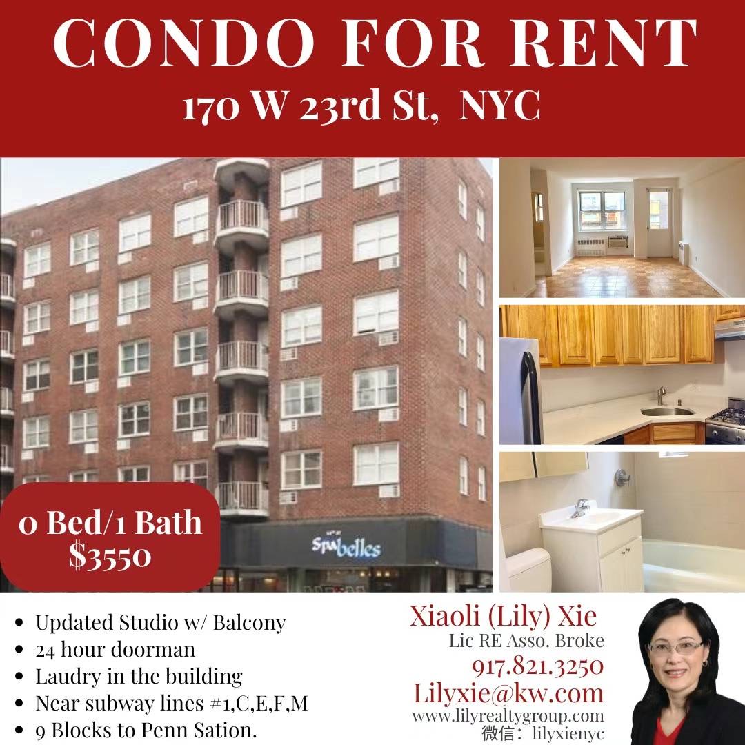 Manhattan曼哈顿公寓房子出租 新上市曼哈顿公寓房屋出租【曼岛统舱出租】 全面翻新的一室公寓,配有朱丽叶阳台,位于切尔西黄金地段的全服务公寓楼内。该大楼提供24小时门卫、礼宾服务、住家管理员、洗衣房、自行车存放和储物室。#1地铁就在您家门口,还有M23跨城巴士以及C、E、F和M地铁线都在一个街区之外。靠近FIT、全食超市和宾夕法尼亚车站。
