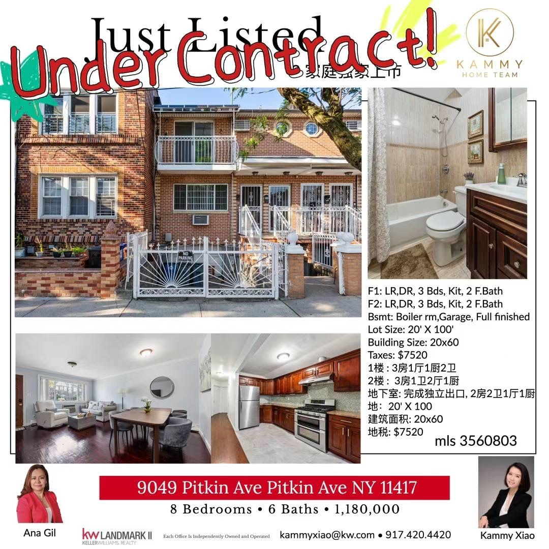 法拉盛华人房地产公司纽约房地产经纪人❤️恭喜恭喜恭喜我们的买家卖家们顺利合同中, 9049 Pitkin Ave Ozone Park, 漂亮砖头两家庭、非常感谢租客的配合、买房子免费送好租客😉我们把他们也一起卖出去🙌