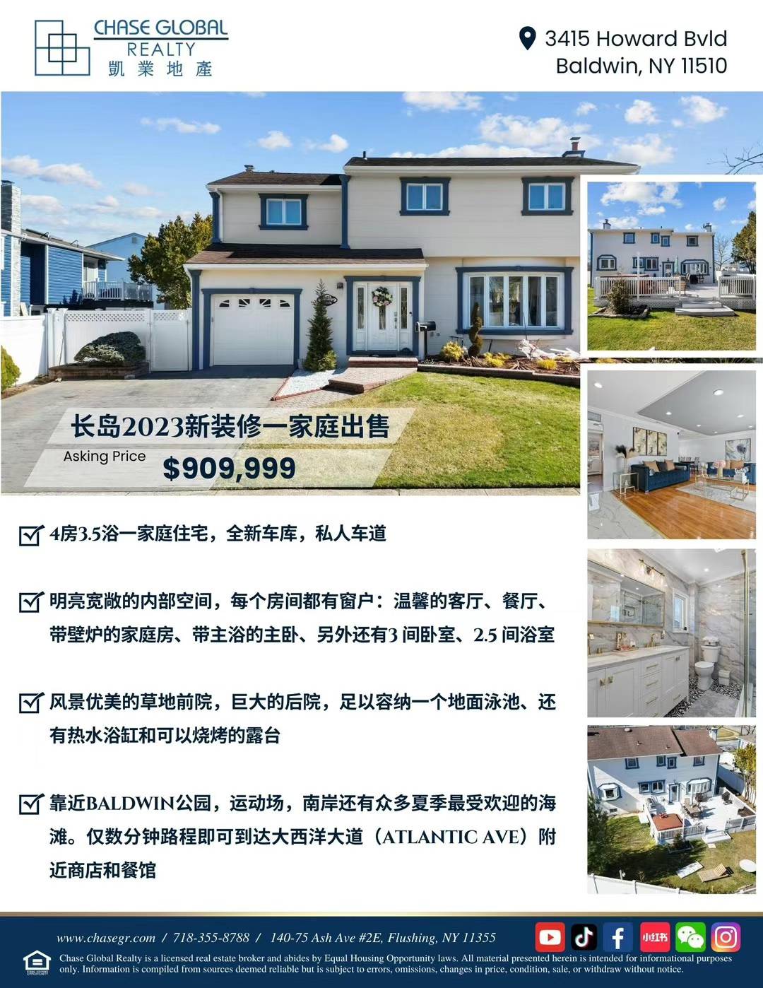 🔹4房3.5浴一家庭住宅,全新车库,私人车道