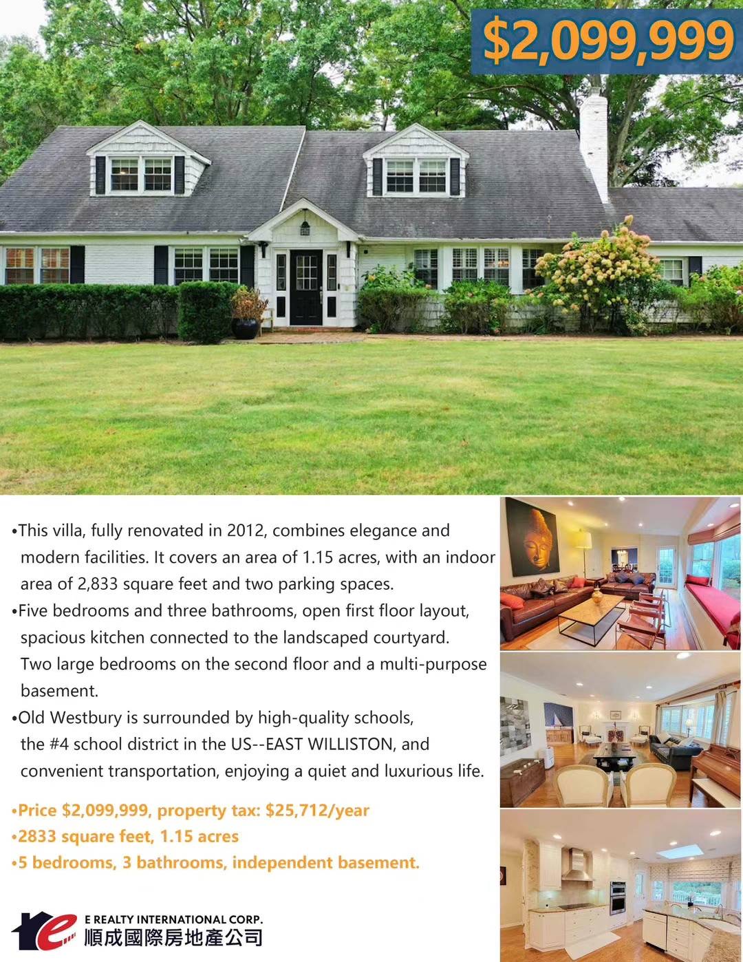 ✅售价$ 2,099,999,地税:$25712/年