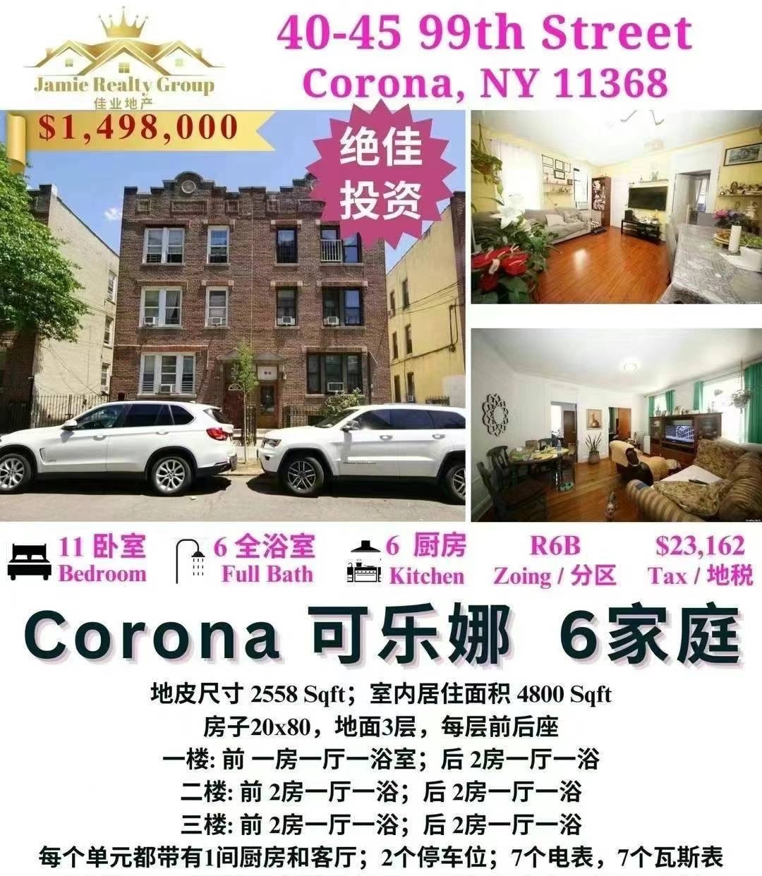 Corona可乐娜房子出售Corona NY新上市可乐娜房屋出售降价到,$1,498,000