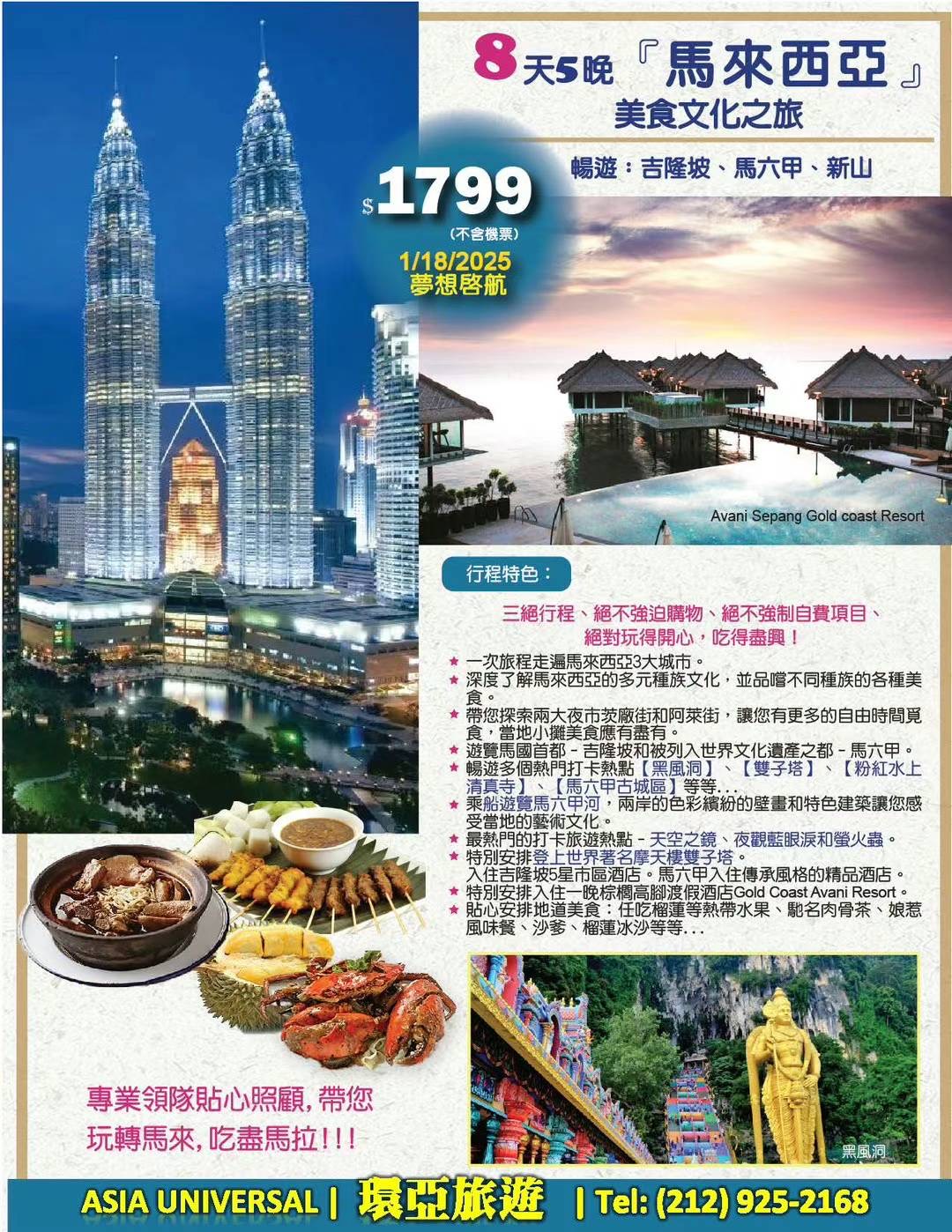 🧳🧳暢遊吉隆坡、馬六甲、黑風洞等著名打卡熱點。