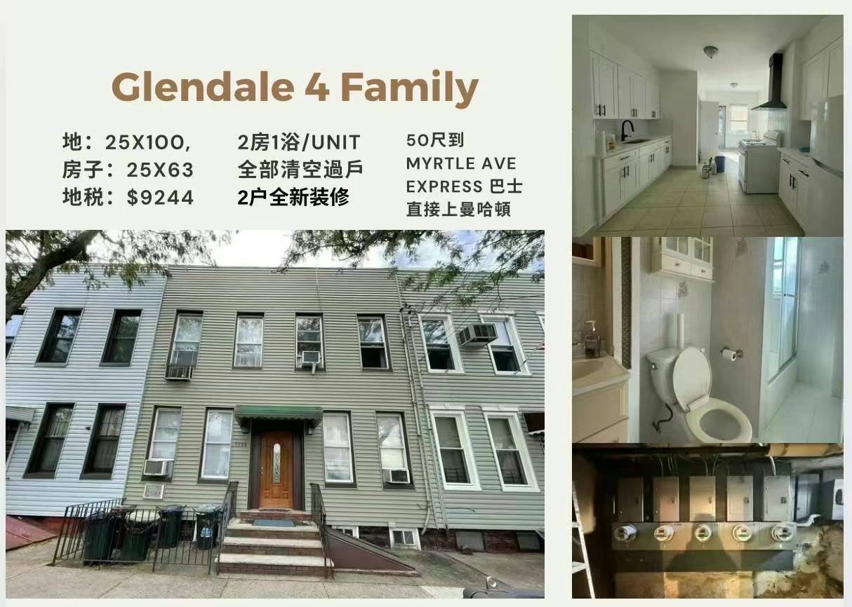 Glendale Queens纽约 皇后区格伦代尔房子出售Glendale Queens NY新上市格伦代尔房屋出售[玫瑰]純白及華人區Glendale 4 家庭!