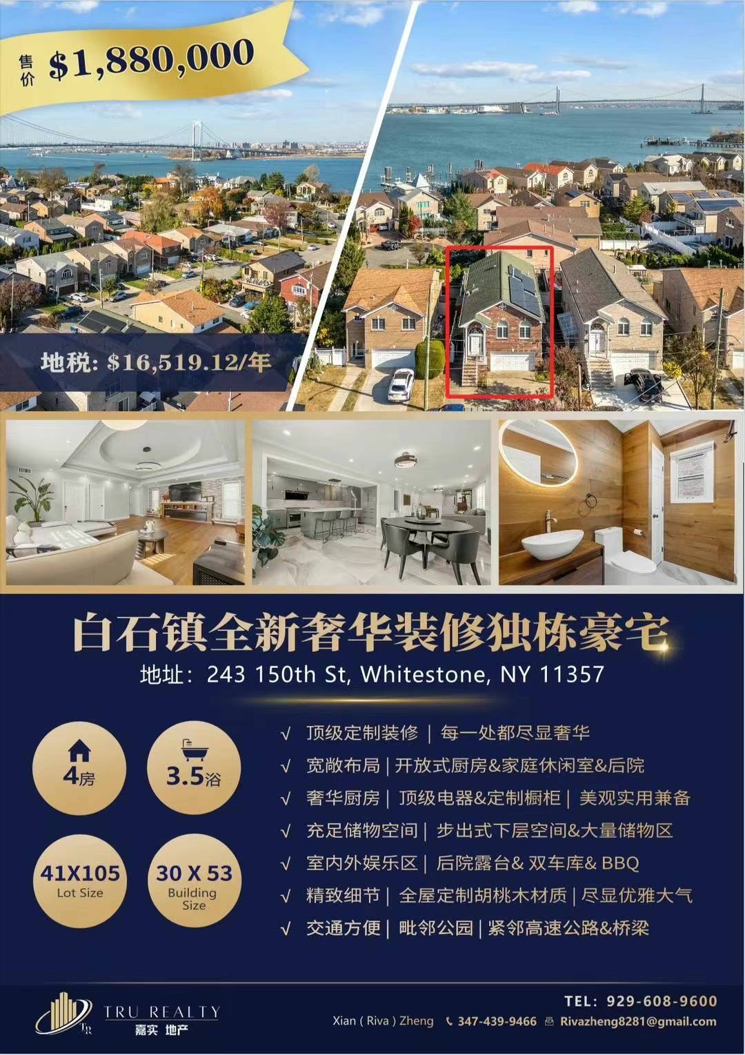 ❇️地址: 243 150th St, Whitestone ❇️Lot Size: 41 X 105❇️Building Size: 31 X 53❇️售价:$188万