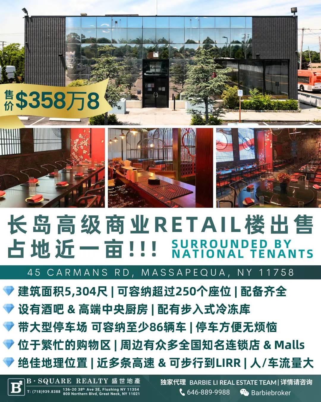 长岛高级商业RETAIL楼出售占地近一亩!!! SURROUNDED BY NATIONAL TENANTS