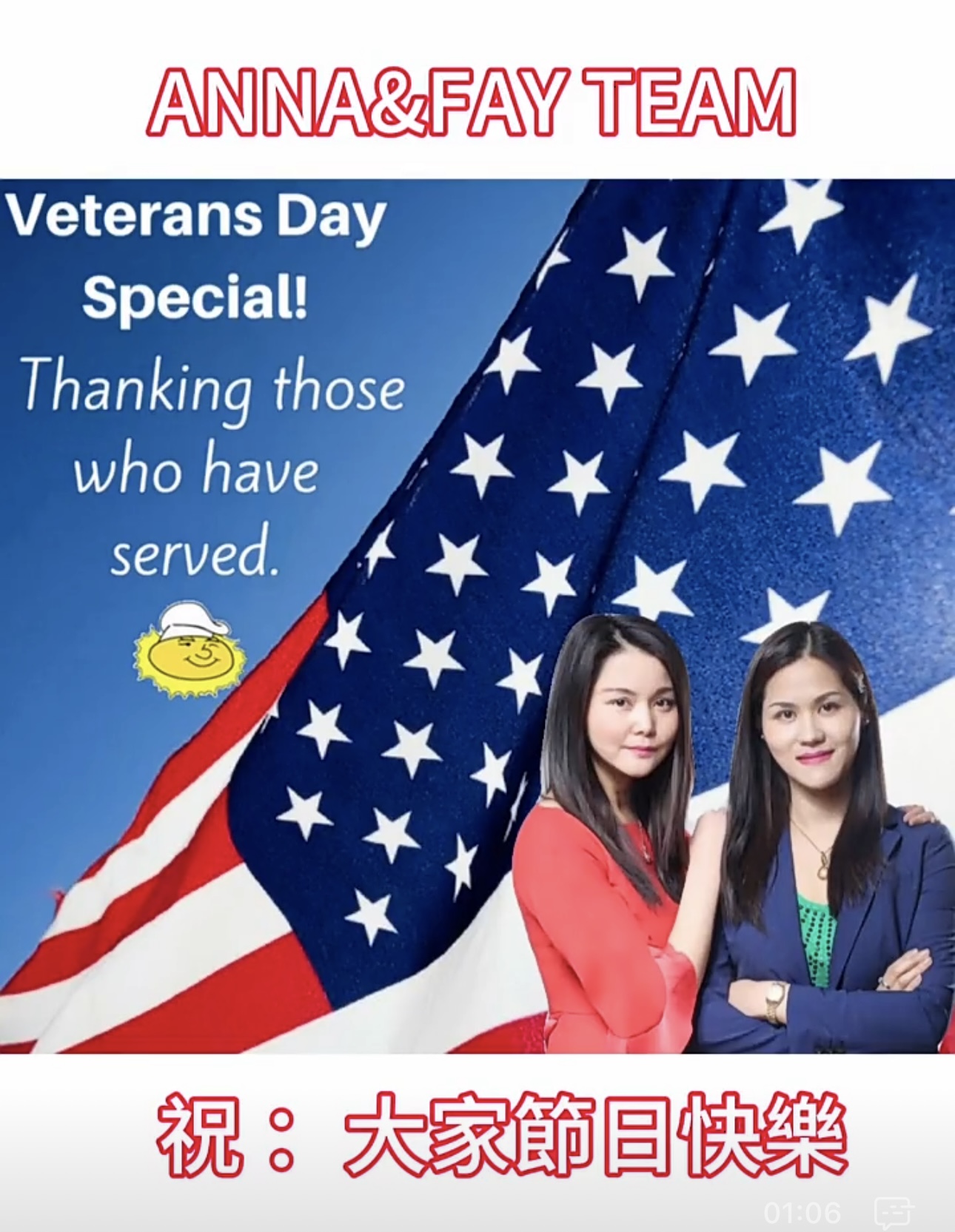 New York Top Real Estate Agent纽约著名地产经纪 法拉盛华人房地产公司纽约资深千万房地产经纪 朝陽地產ANNA&FAY 地產團隊祝:大家節日快樂😄😄双十一也是美国的老兵节🇺🇸每年的11月11日,美国都会迎来 Veterans Day,即老兵节/退伍军人节。这是一个重要的纪念日,用来感谢和致敬所有曾为国家服役的退伍军人。这个节日的起源与第一次世界大战有关,正是在1918年的11月11日,战争正式结束,历史上称为“停战日”(Armistice Day)。后来,这一天被美国定为全国性的纪念日,向那些为国付出、守护和平的退伍军人们🙏🙏💯💯😄