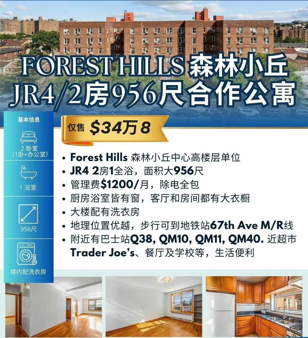 Forest Hills纽约森林小丘房子出售Forest Hills NY House For Sale新上市森林小丘房屋出售Forest hills 森林小丘Jr4/2房956尺超大CO-OP合作公寓仅售34万8🔥