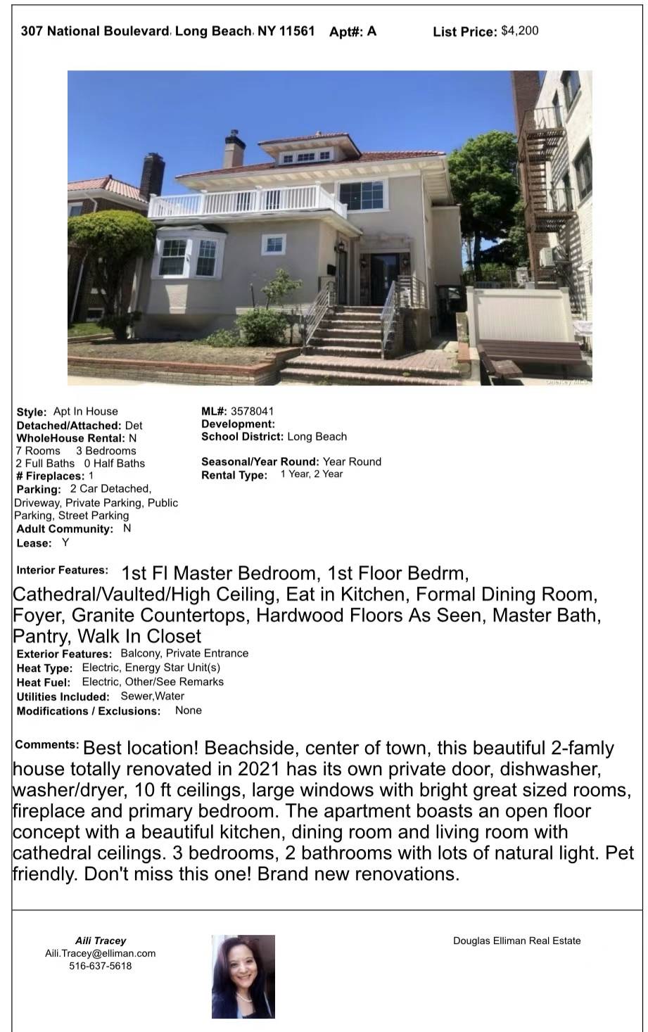 Long Island纽约长岛租房Long Island NY House For Rent新上市长岛租赁🌹长岛long beach 步行2个stop signs到大西洋 board wall 生活在这里 好像每天都在度假🏖️ 难得的大三房1700 多尺 租金只要$4000/月 还带车库及私人车道 希望找到幸运儿👏合作☎️516-637-5618
