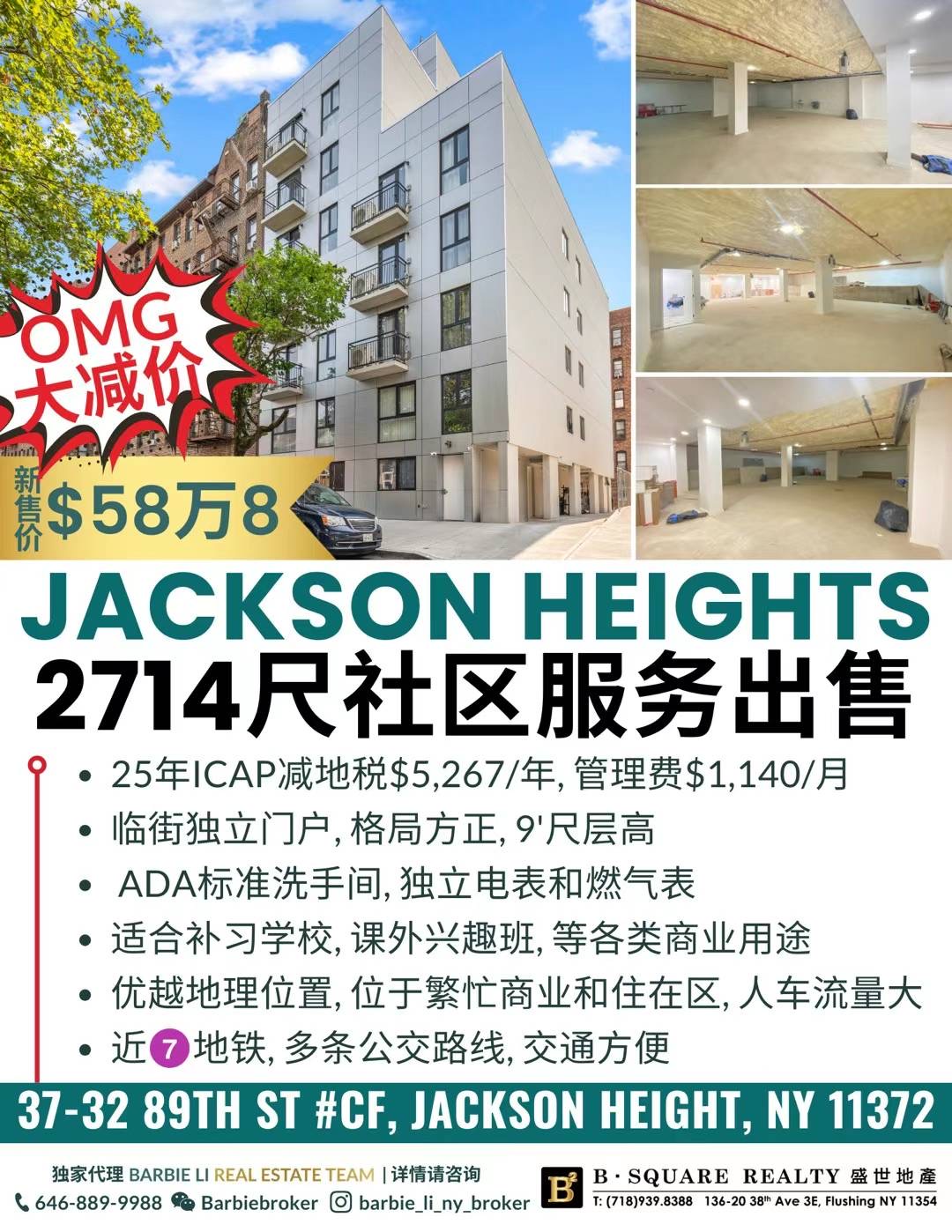 💥JACKSON HEIGHTS 2714尺社区服务出售💥