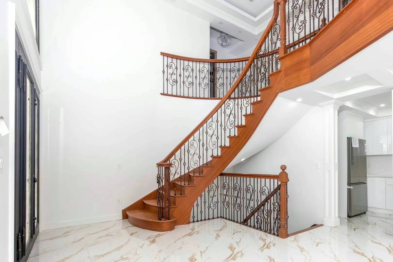一楼主人房前座:高挑开放式客厅/厨房、餐厅,1全浴,大旋转楼梯到二楼4房3浴,(两个套房)