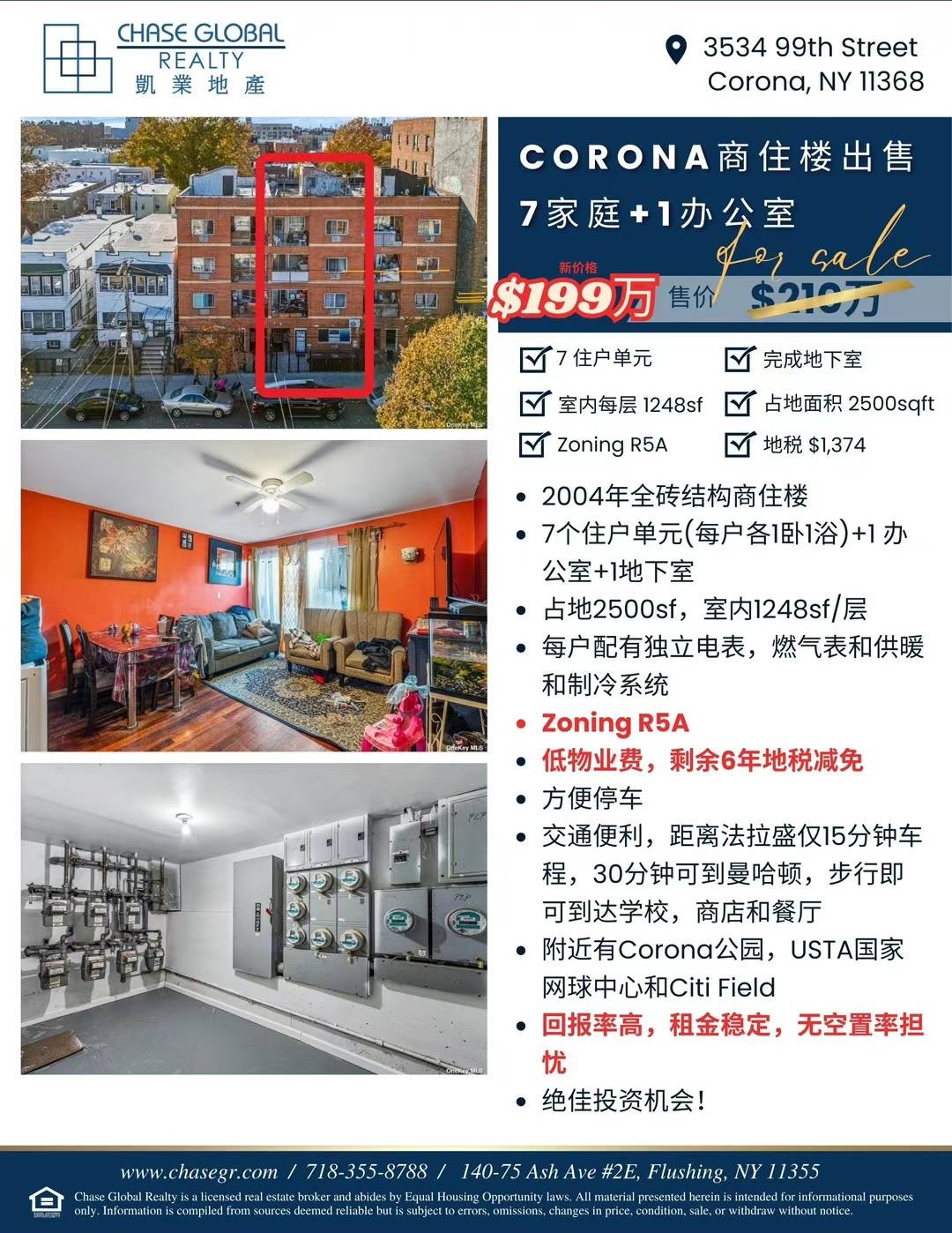 Corona纽约可乐娜房子出售Corona NY House For Sale新上市可乐娜房屋出售🔥凯业地产全新Corona 7家庭+1 office商住楼出售🔥💰售价199万💰