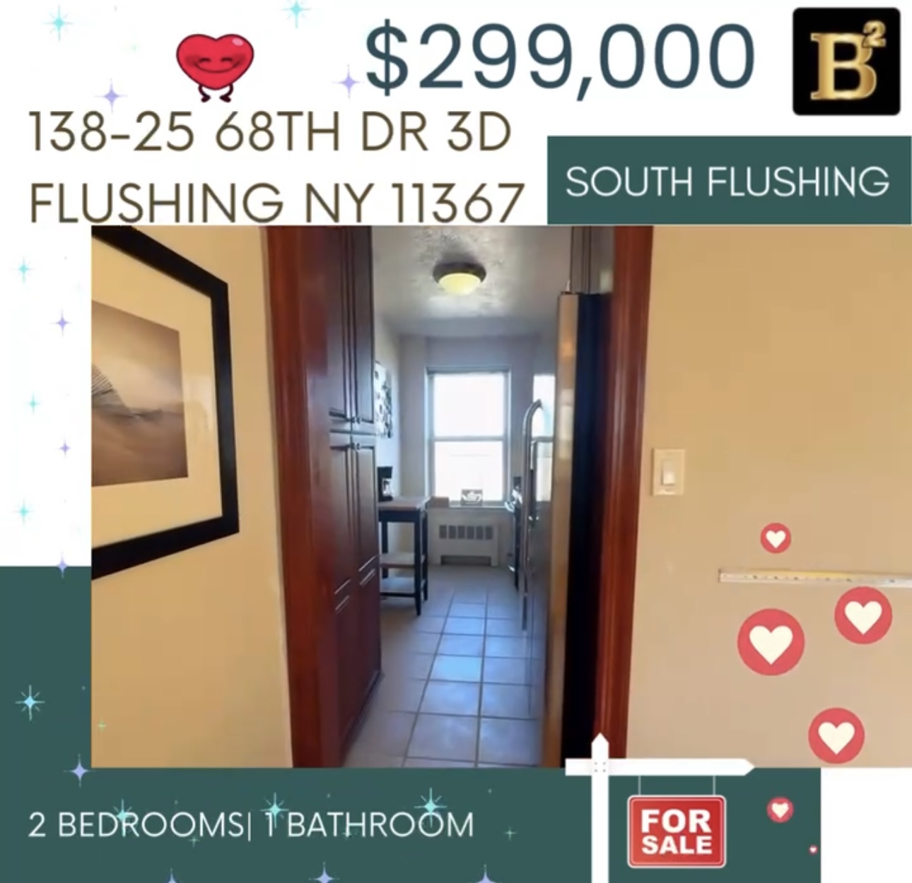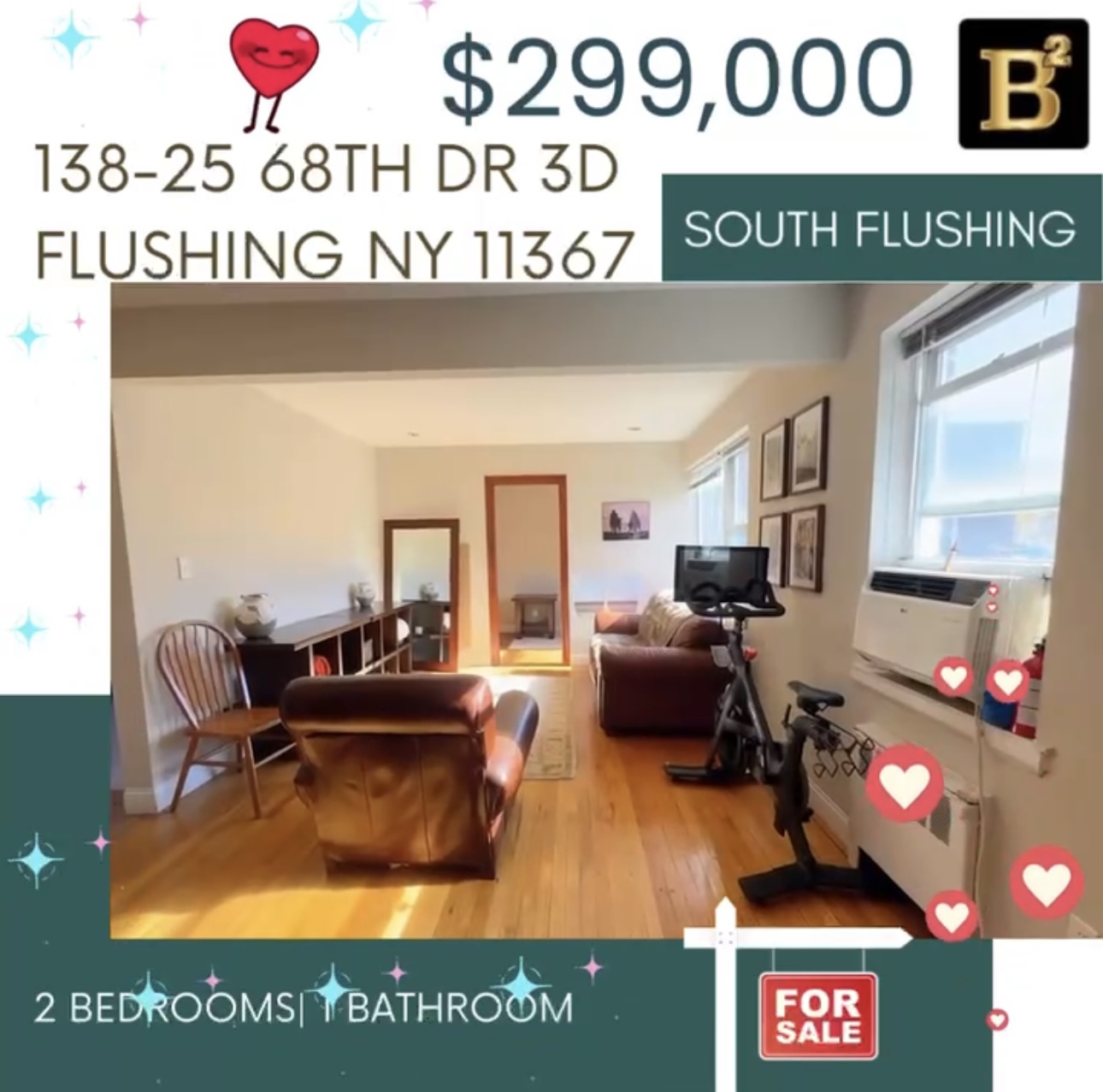 独家新上市!法拉盛2卧1浴 700尺合作公寓,全屋多窗,光照明亮,阳光充足。超大温馨主人房,洗手间带窗通风一流,配置一间舒适儿童房,可改为瑜伽/运动室,或者私人工作室,设有多个衣柜,实木地板,超好打理,领包入住。位置超优,生活便利。近学校,超市,餐厅,商店等一切。步行5分钟到公交站Q20A/Q64,及曼哈顿大巴QM4。千万不要错这套好房,方便约看。📍 138-25 68th Dr #3D Flushing NY 11367