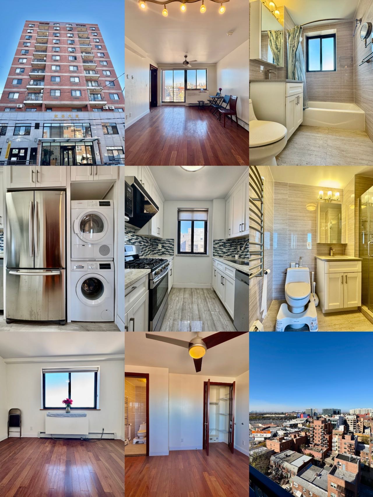1️⃣🌇法拉盛大户型两房两浴公寓出租(908SF)高楼层 曼哈顿view 中央空调 有阳台 租金只要$2200 (没电梯,可小宠)地址:3111 Linden Pl.