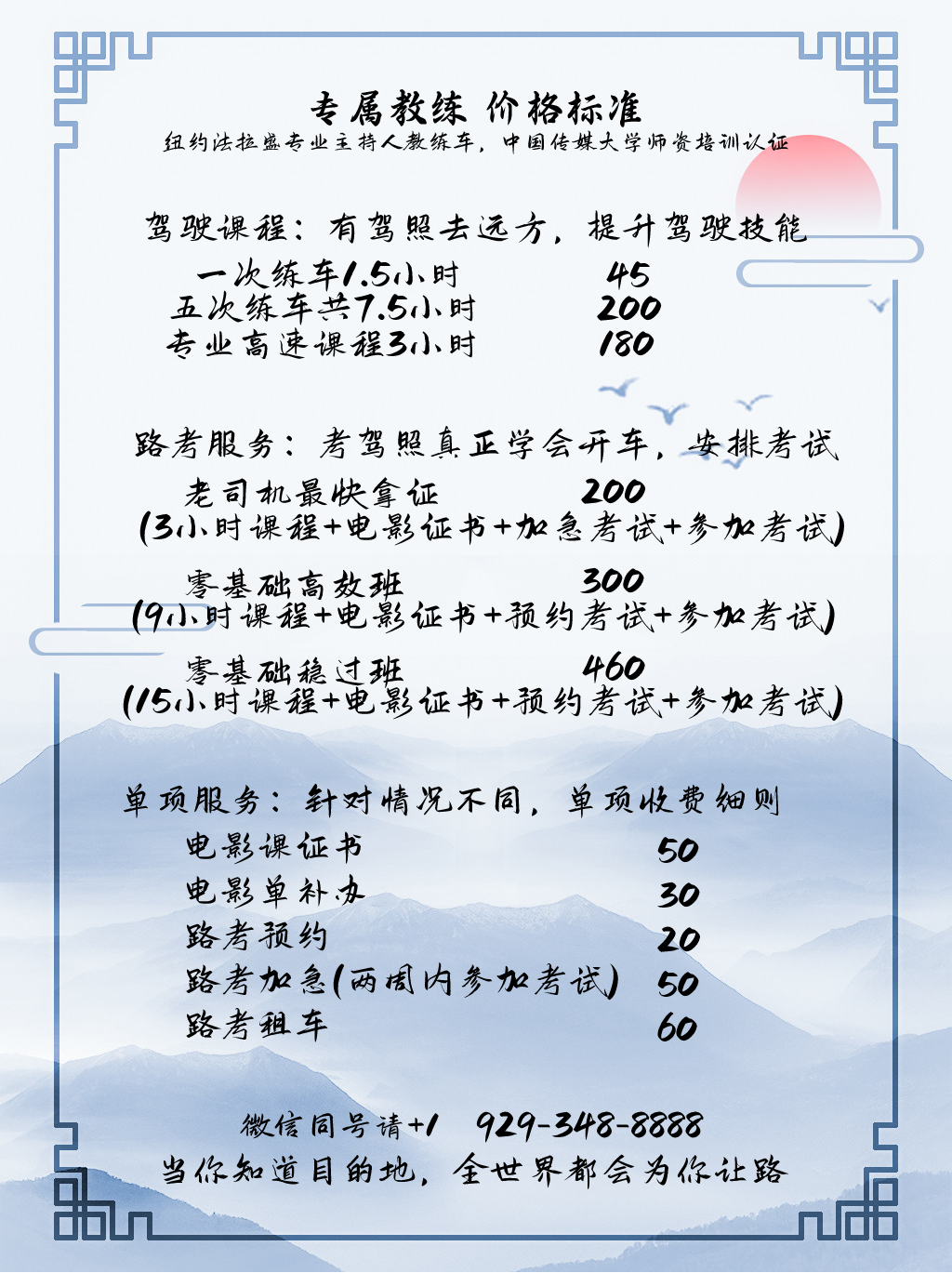 十年主持经验,主持纽约各大晚会,中国传媒大学师资认证,两年驾校从业经验,专业解决各种难题。