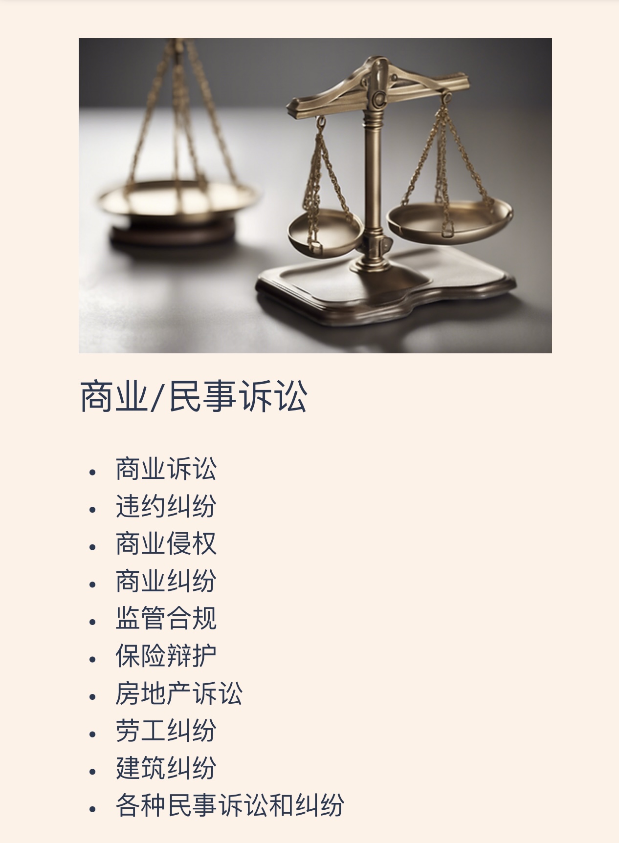 商业/民事诉讼 我们在州法院和联邦法院提供高质量的商业/民事诉讼服务,涉及商业法的所有领域。