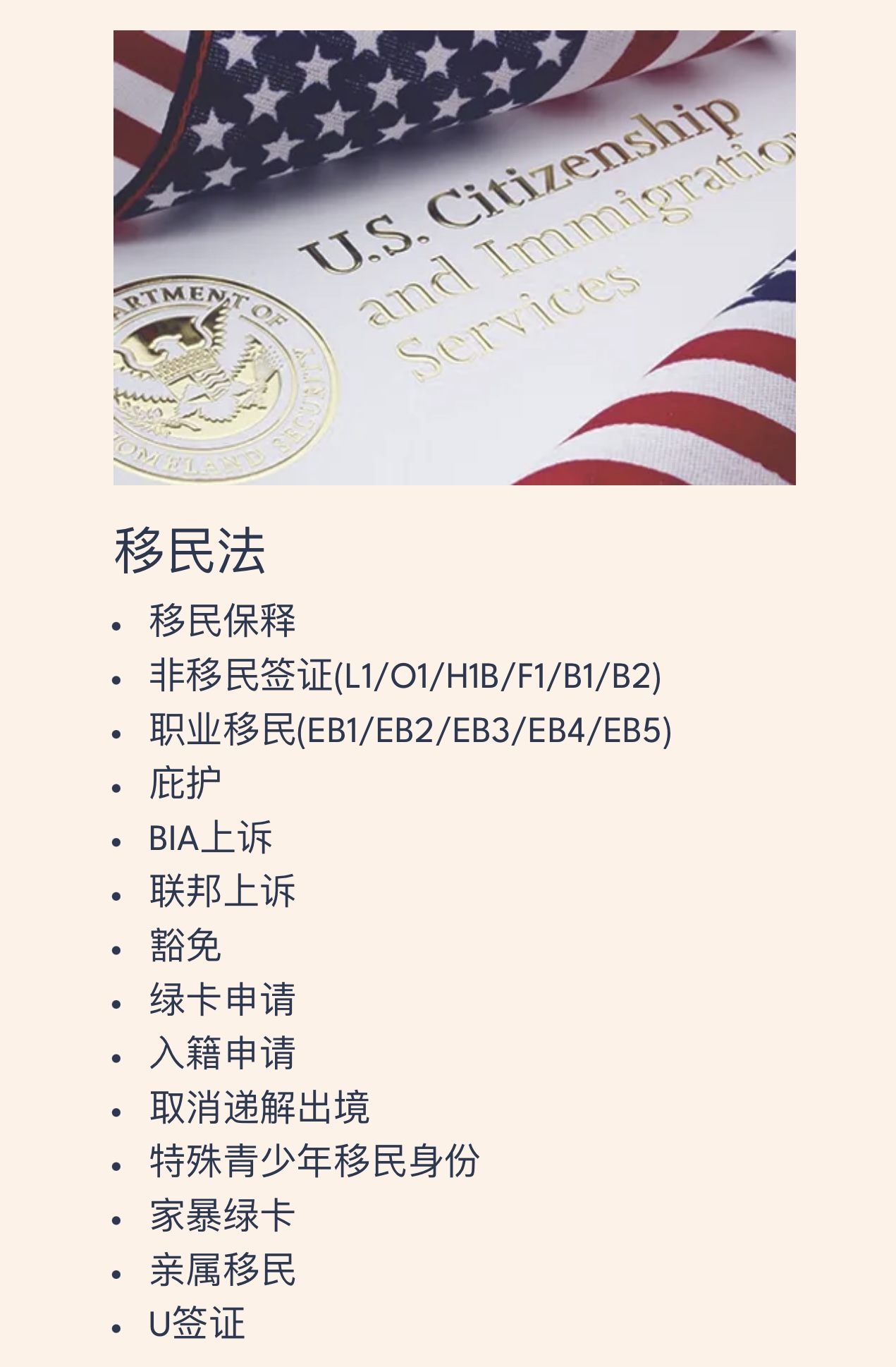 移民法 我们提供全方位的移民法律实践服务,帮助您完成复杂的美国移民流程并探索您的所有选择。