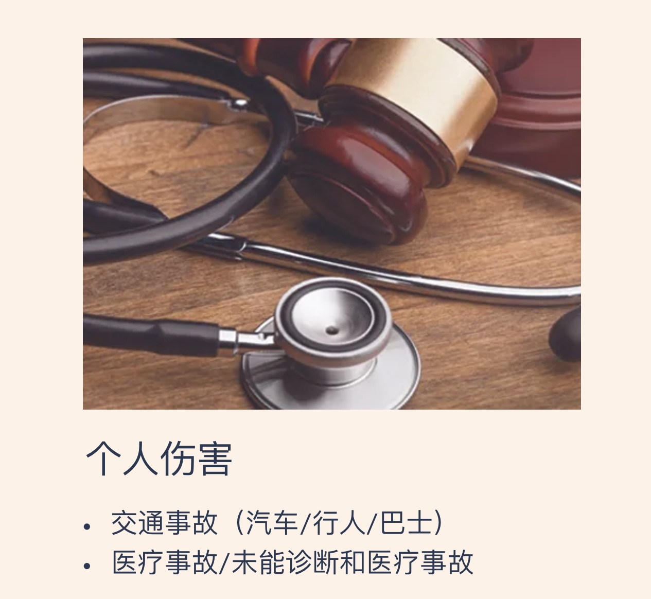 个人伤害 如果您是事故的受害者,我们的律师事务所可以帮助您探索获得赔偿的法律选择。