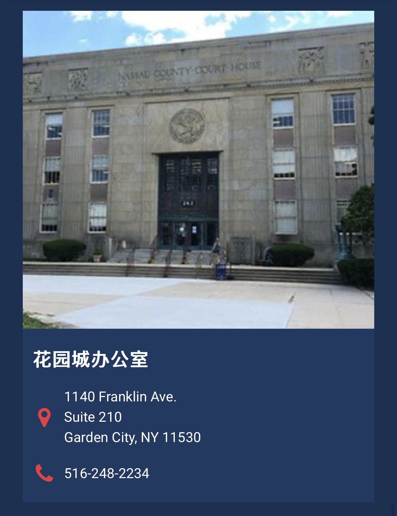 请拨打我们的免费电话888.519.6400,或在花园市拨打516.248.2234,或在法拉盛-皇后区拨打718.539.3100联系我们。你也可以填写我们的联系表,我们会与你联系。