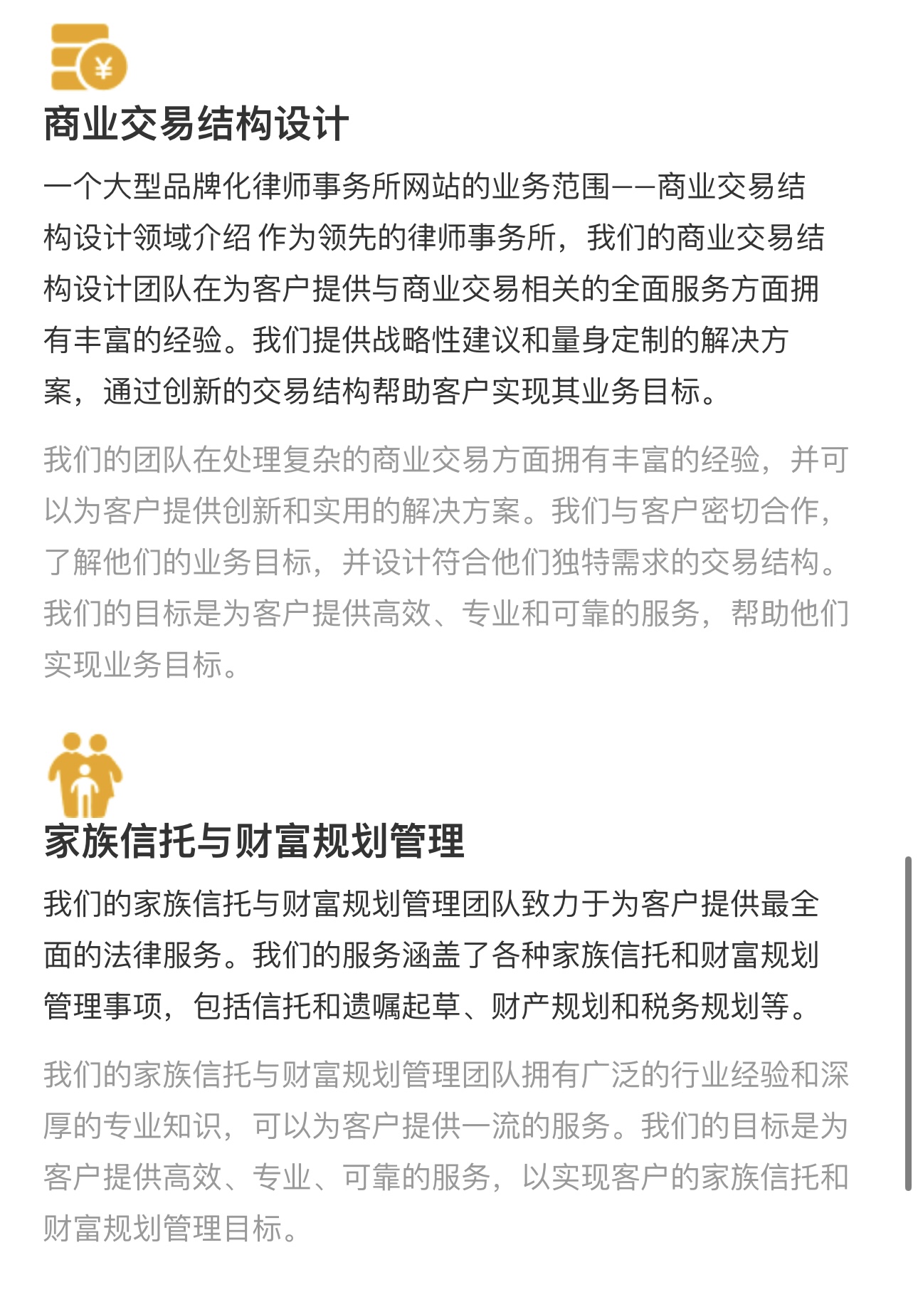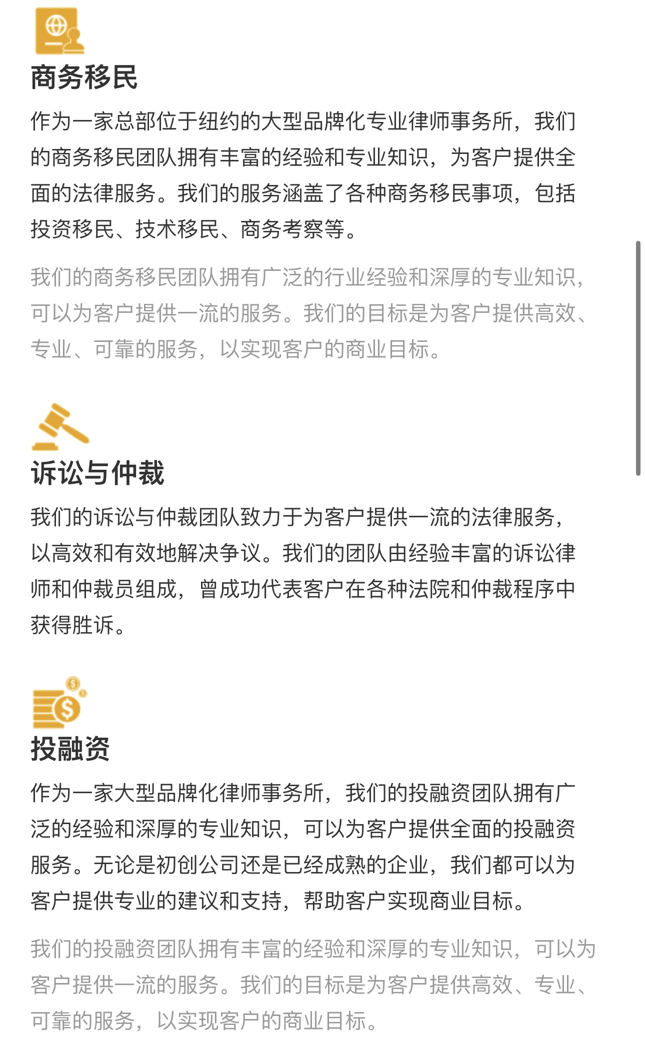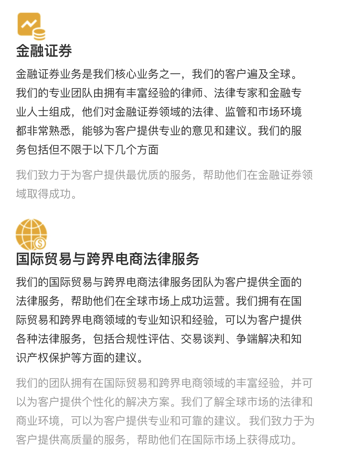 艾利德律师事务所专注的业务领域包括金融证券、大型民商事诉讼、移民、信托、知识产权、纳斯达克上市收并购及疑难复杂案件,同时还为全球高净值人士提供定制化服务。艾利德律师事务所将客户视为最重要的合作伙伴,通过持续提升服务标准为客户带来最大利益。凭借强大的律师团队和全球专家的支持,为客户提供全球化、专业化的服务,助力客户实现商业梦想!