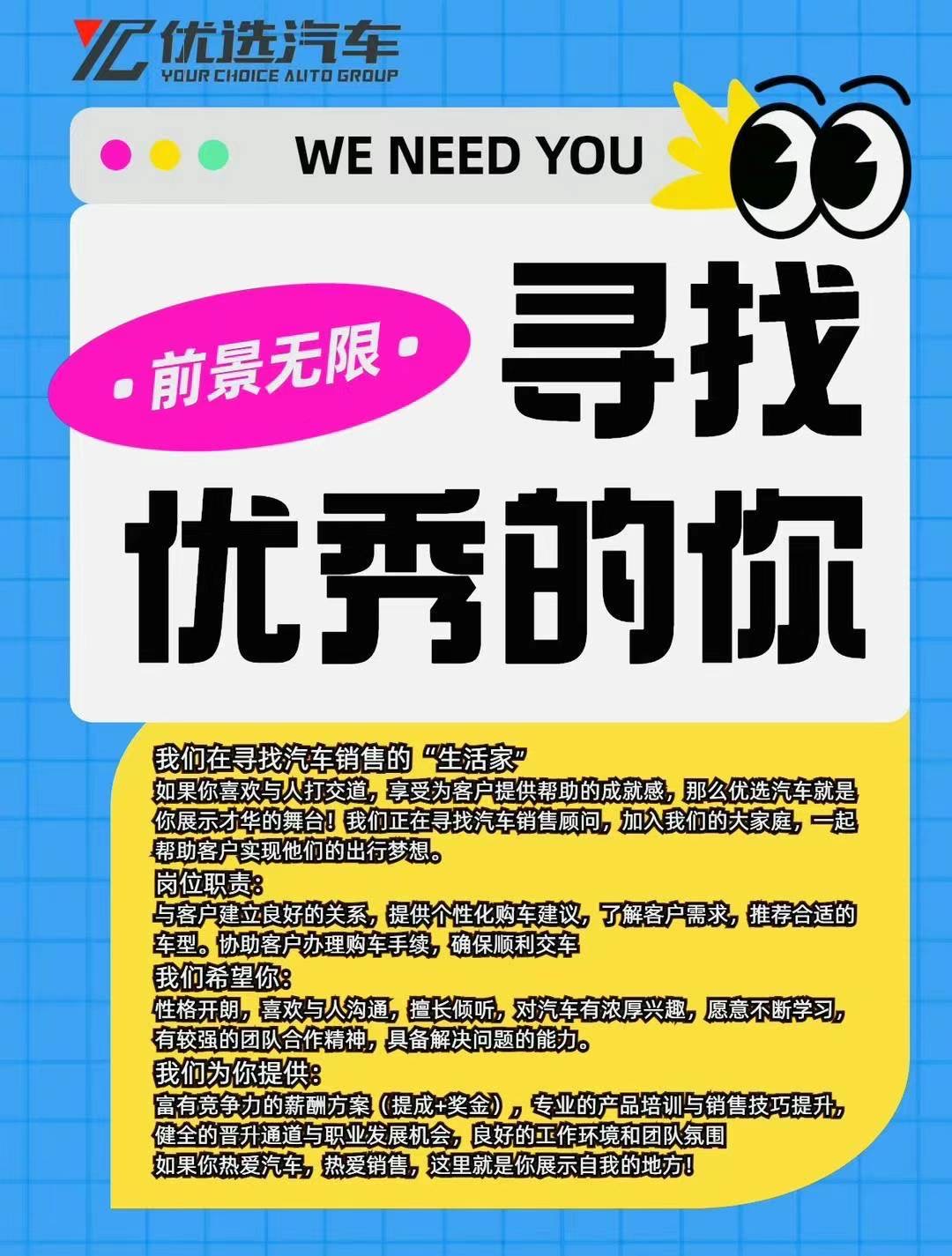 优选汽车-Your Choice Auto Group寻找优秀的你汽车销售顾问 纽约优选汽车二手汽车买卖 纽约法拉盛新车销售 纽约华人汽车出售Used Car for sale NY🔎谁家有活泼可爱热情大方的汽车人🚗欢迎加入📍优选YOUR CHOICE AUTO如果你喜欢与人打交道🤝享受为客户提供帮助的成就感🌟那么优选汽车就是你展示才华的舞台!💌我们正在寻找汽车销售顾问,加入我们的大家庭,一起帮助客户实现他们的出行梦想。岗位职责:1:与客户建立良好的关系,提供个性化购车建议,了解顾客需求,与推荐2:了解客户需求,推荐合适的车型协助客户办理购车手续,确保顺利交车我们希望你:性格开朗,喜欢与人沟通,擅长倾听对汽车有浓厚兴趣,愿意不断学习有较强的团队合作精神,具备解决问题的能力‼️我们为你提供:富有竞争力的薪酬方案(提成+奖金)专业的产品培训与销售技巧提升健全的晋升通道与职业发展机会良好的工作环境和团队氛围如果你热爱汽车,热爱销售,这里就是你展示自我的地方!了解详情 欢迎亲临优选汽车🔎小余姐姐929-939-1177公司地址法拉盛📍167-04 Northern Boulevard
