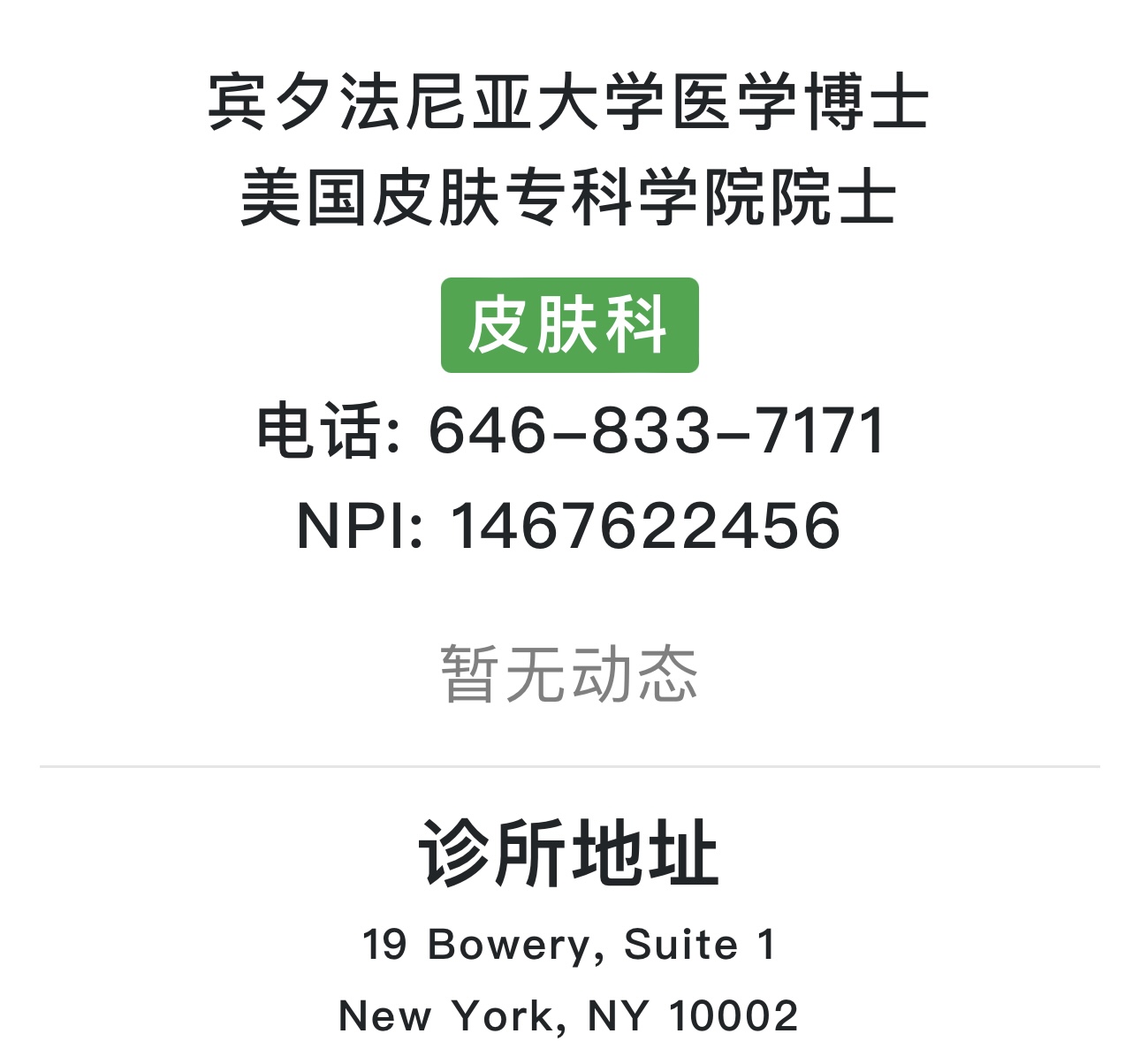 陆爱琳纽约皮肤科诊所 陆爱琳法拉盛皮肤科医生推荐 纽约陆爱琳最好的皮肤科医生推荐 陆爱琳皮肤科医生唐人街 八大道皮肤科陆爱琳陆爱琳医生在宾夕法尼亚大学医学院取得医学博士学位,曾先后在哈佛大学医学院担任实习医生丶在哥伦比亚大学医学院出任临床实习医生,并曾在洛克菲勒大学研究院担任研究员,曾是纽约大学医院皮肤科住院医生;陆医生为美国皮肤专科学院院士,在各类皮肤疾病方面治疗颇有独到研究。陆爱琳医生精治灰指甲丶各种成人及儿童皮肤症丶青春痘丶牛皮癣丶湿疹丶玫瑰斑疹丶皮肤过敏痕痒丶感染丶皮肤癌丶肿瘤切除(囊肿丶皮疣),男女性病;另以化学脱皮及镭射等有助皮肤美容,并对白蚀症丶黄褐斑丶湿疹丶牛皮癣等症疗效有所改善。