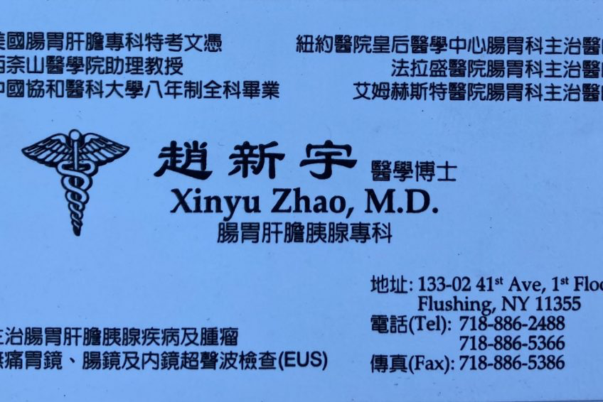 赵新宇肠胃科医生推荐 赵新宇肠胃科医生法拉盛 纽约赵新宇最好的肠胃科医生美国肠胃肝胆专科特考文凭、纽约医院皇后医学中心肠胃科主治医师、西奈山医学院助理教授、法拉盛医院肠胃科主治医师、中国协和医科大学八年制全科毕业、艾姆赫斯特医院肠胃科主治医师医学博士:赵新宇Xinyu Zhao, M.D.肠胃肝胆胰腺专科 主治肠胃肝胆胰腺疾病及肿瘤 无痛胃镜、肠镜及内镜超声波检查(EUS)地址:133-02 41st Ave, 1st Floor Flushing, NY 11355电话(Tel):347-753-1165