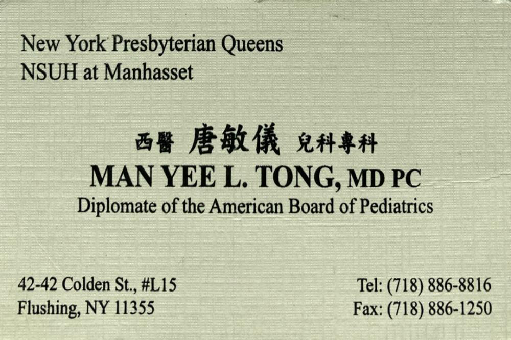唐敏仪法拉盛儿科医生推荐 唐敏仪儿科医生法拉盛 纽约唐敏仪最好的儿科医生唐敏仪医生(Tong, Man Yee)是纽约小儿科(Pediatrics)华人医生, 现可接收新患者。唐敏仪医生和其诊所下属工作人员可直接为您提供中文医疗服务,唐医生诊所也可通过电话或网络视频为美国大部分地区患者提供非紧急远程中文医疗服务,唐医生可以将绝大部分治疗药物处方直接发送到美国境内您指定的药房,您可致电唐敏仪医生诊所了解详细信息。如有特殊医疗需要,北美好医生也会尽可能为您和医生提供远程医疗技术支持,致力让您在美国各地都能享受优质中文医疗服务。
