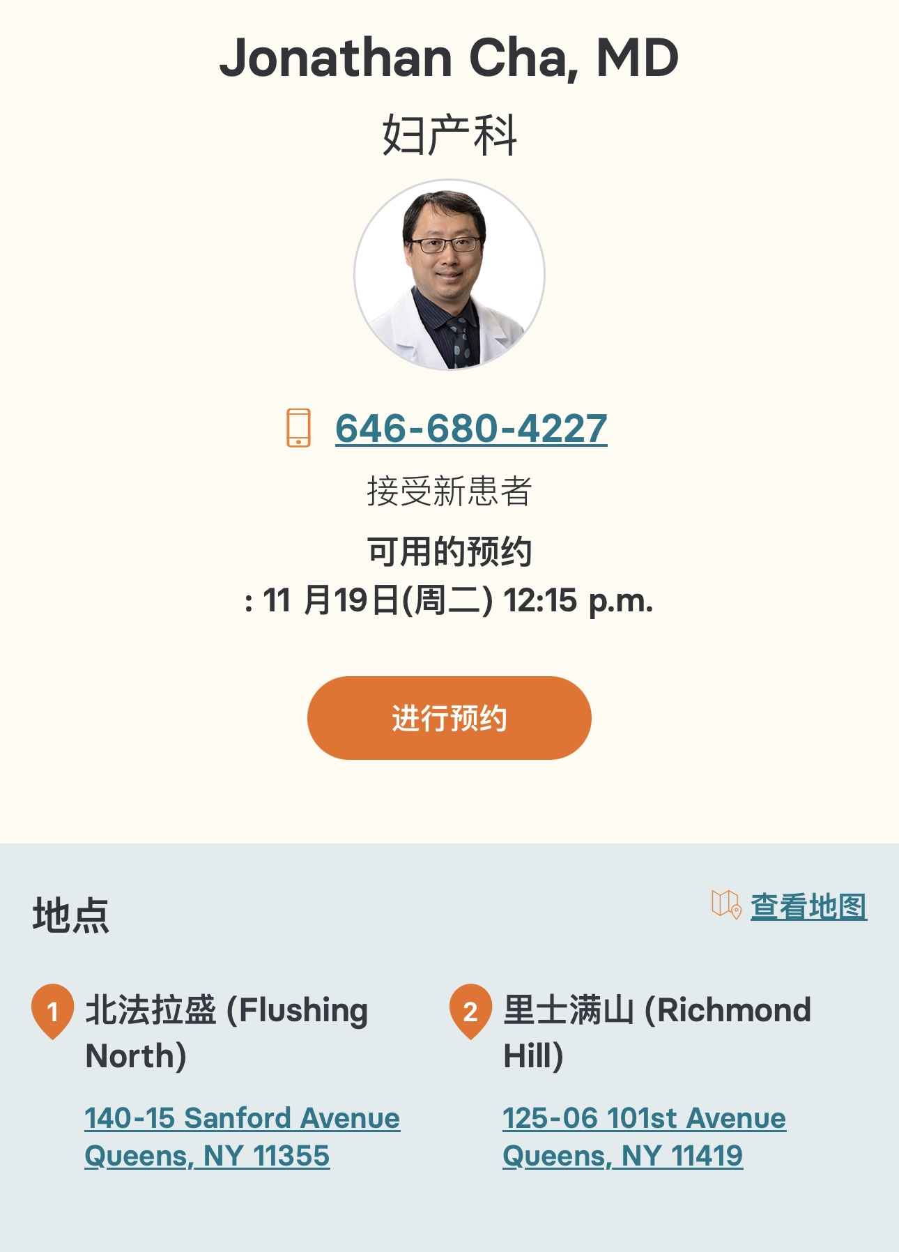 妇产科法拉盛 妇产科推荐 纽约最好的妇产科医生推荐Cha 医生是北法拉盛 (Flushing North) 诊所的一名妇产科医生,致力于每天倡导女性健康。他毕业于纽约医学院,并在法拉盛医院医疗中心完成了住院医师项目。他隶属于长岛 (Long Island) 犹太医疗中心/Northwell Health 和 EMU(无需住院的)门诊手术中心。